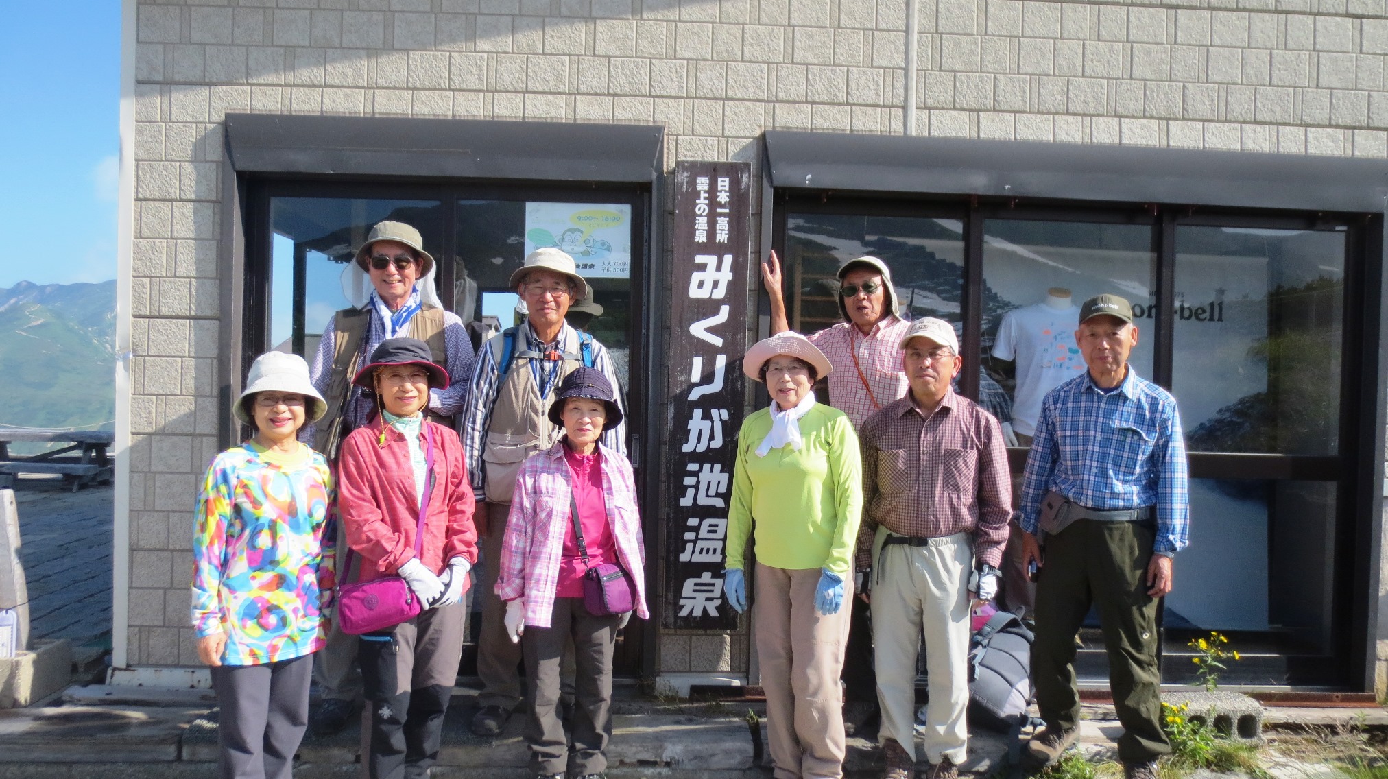 <まずは記念写真> <宿泊するみくりが池温泉が見えた>