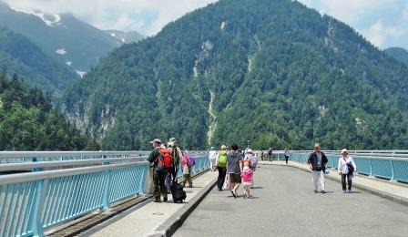 <黒部湖を左手にケーブル乗り場へ向かう>