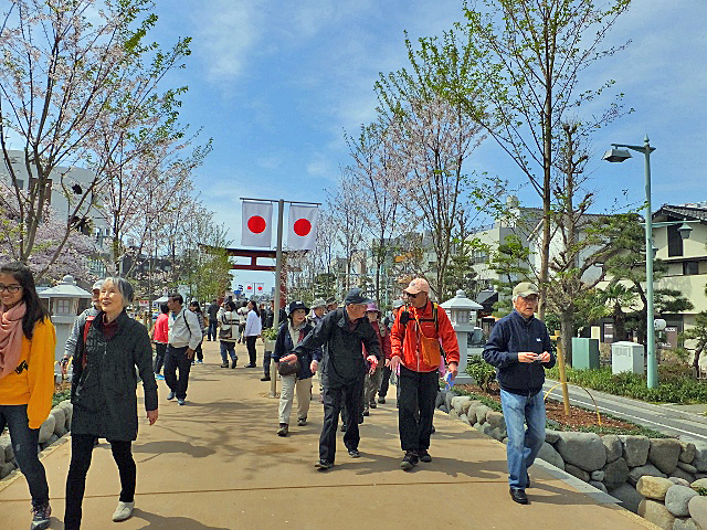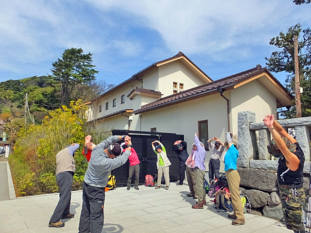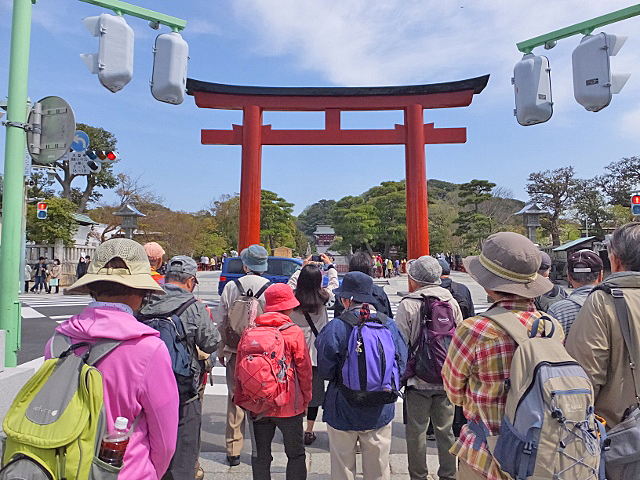 定刻通り鎌倉駅東口に全員集合、二の鳥居からリニューアルされた段蔓を進み八幡宮前(三の鳥居)附近で本日のコース説明、体験参加者2名の紹介、ウォーミングアップのあとスタート。