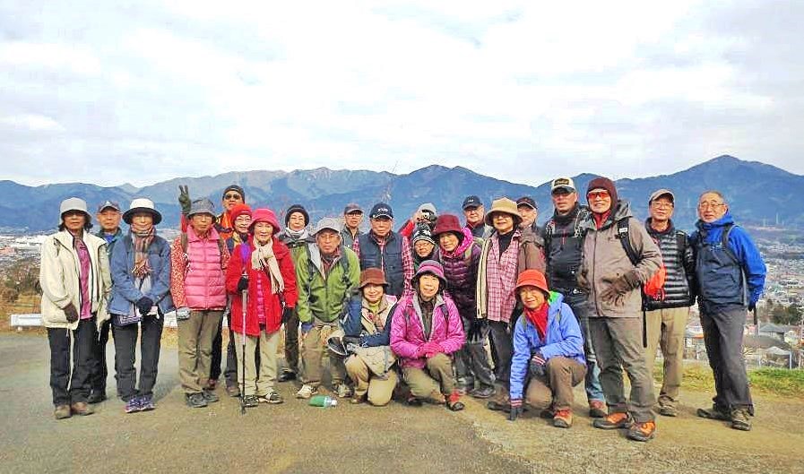<丹沢山系が一望> <ここでも記念写真>