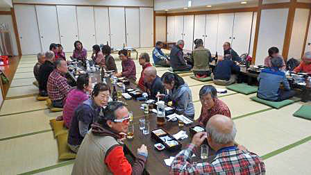 <懇親会> <締めは皆で合唱>