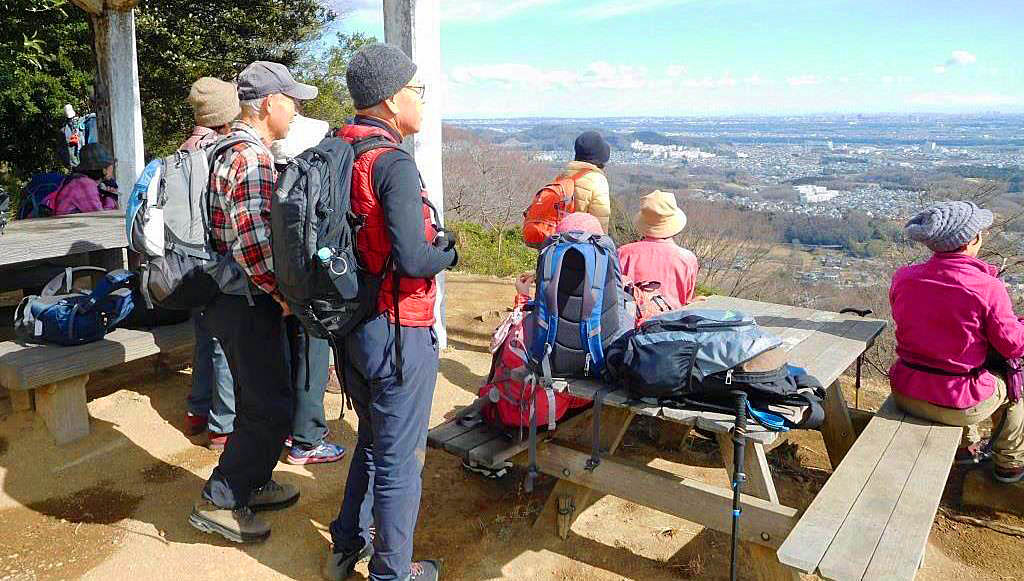 <山頂到着・良い眺めです> <山頂からの展望、スカイツリーが見える>