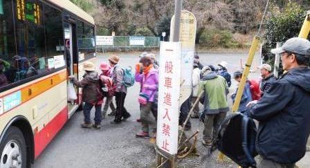 <山道を降りてバス停へ向かう> <貸し切り状態のバスで伊勢原駅へ、>