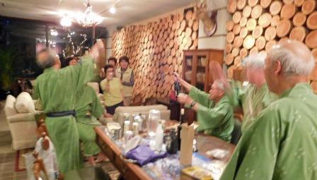 <小糸線築場から白馬に戻る> <夕食後の懇親会。乾杯!!>