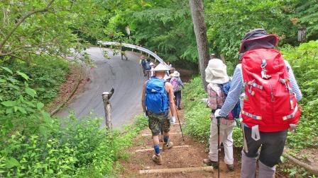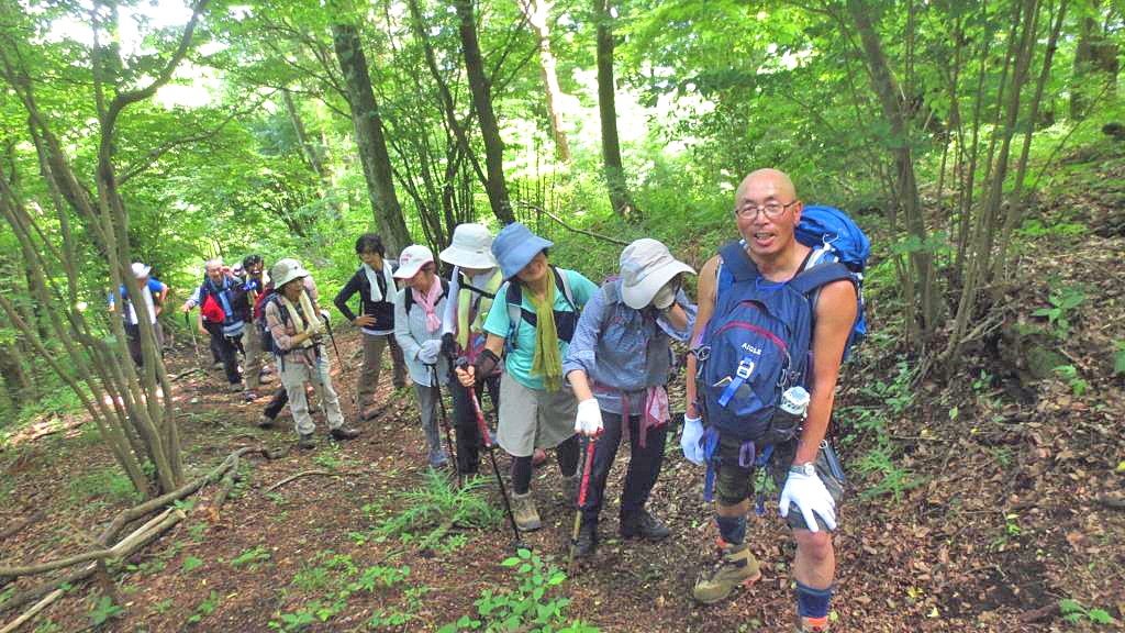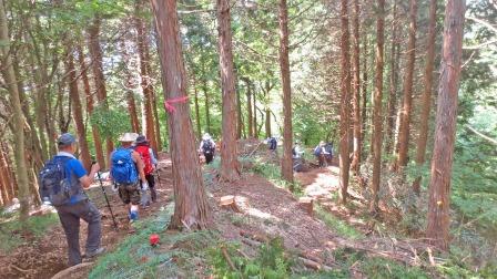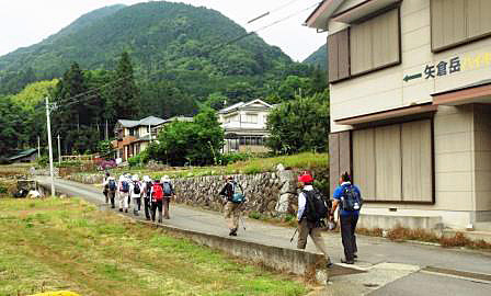 矢倉沢公民館にて説明、ストレッチを行い10時30分登り始める。