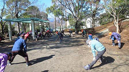 鳶尾中央公園でストレッチ