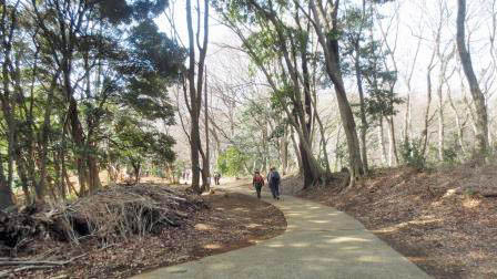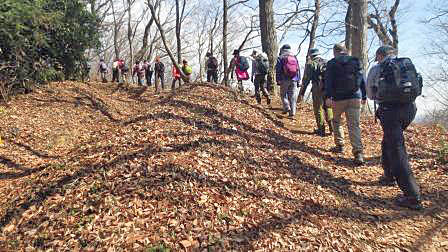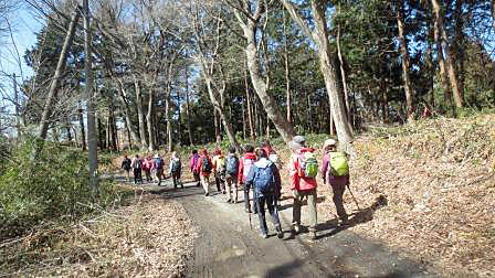 緩やかな登りを行く 八菅山展望台で昼食