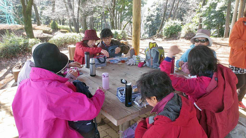 八菅神社の別名はは八菅の七社権現といい、かつては大山阿夫利神社、日向薬師とともに関東での山岳修験の道場であった。ここで休憩の後周囲にアスレチックの遊具がたくさん設置してあるハイキングコースに戻り、梵天塚を通りハ菅山展望台に到着。 ここで昼食を楽しんだ。