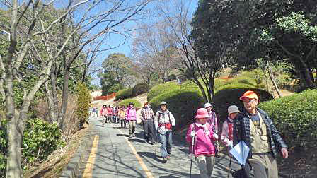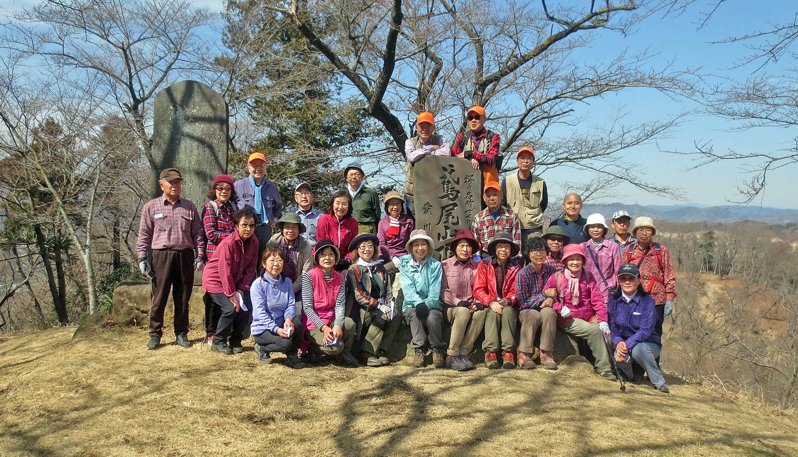 3月2日(金) 前日未明の春の嵐による荒天から一転して春の訪れを感じさせる晴天の暖かい日に恵まれ、参加者28名(男性12名・女性16名)で鳶尾山・ハ菅山ハイキングを楽しんできました。