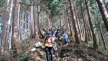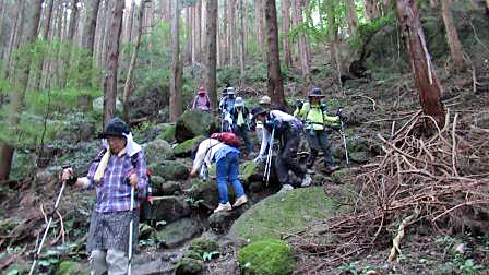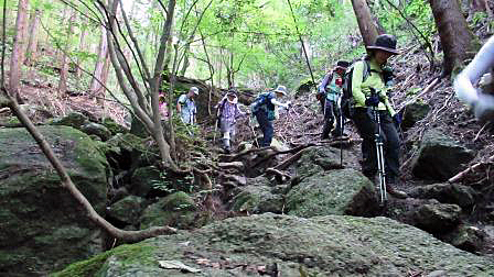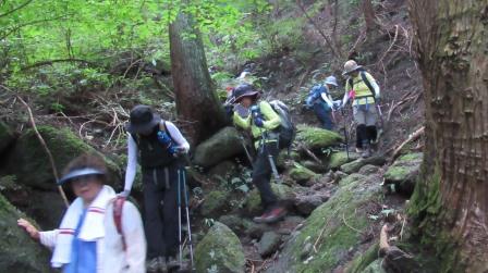 今回は、岩ゴロゴロでしかも滑りやすい道なため、予想外に長い行程となったが、