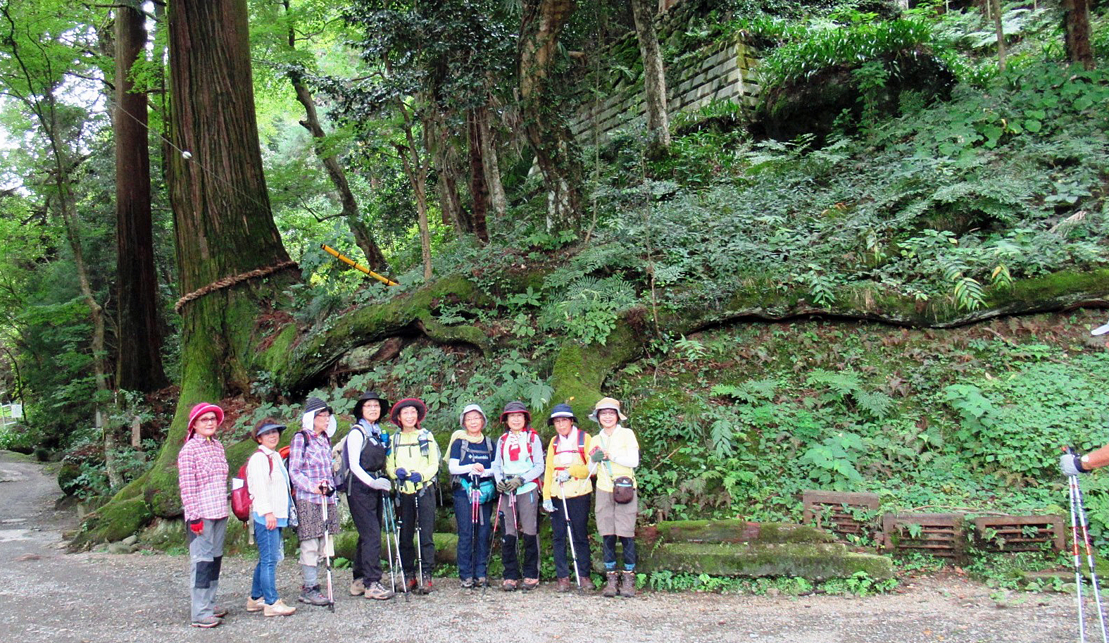 蛇木杉の前で女子揃い踏み 柳沢白蓮ゆかりの顕鏡寺