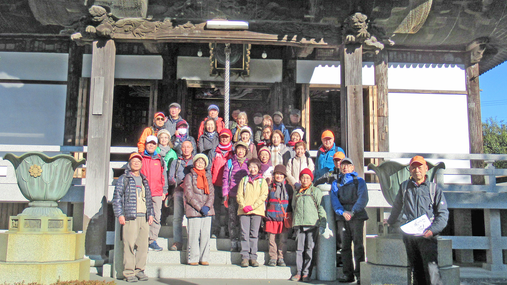2019年1月9日(水)(晴)、「座間の寺社・湧水巡りと総会」で、am9時、小田急・座間駅改札に31名(内、女性17名)が参加しました。