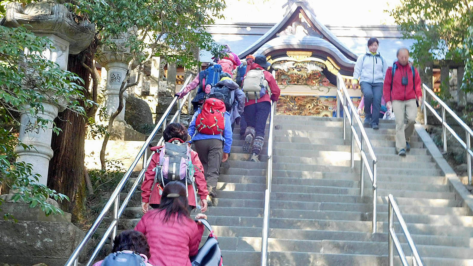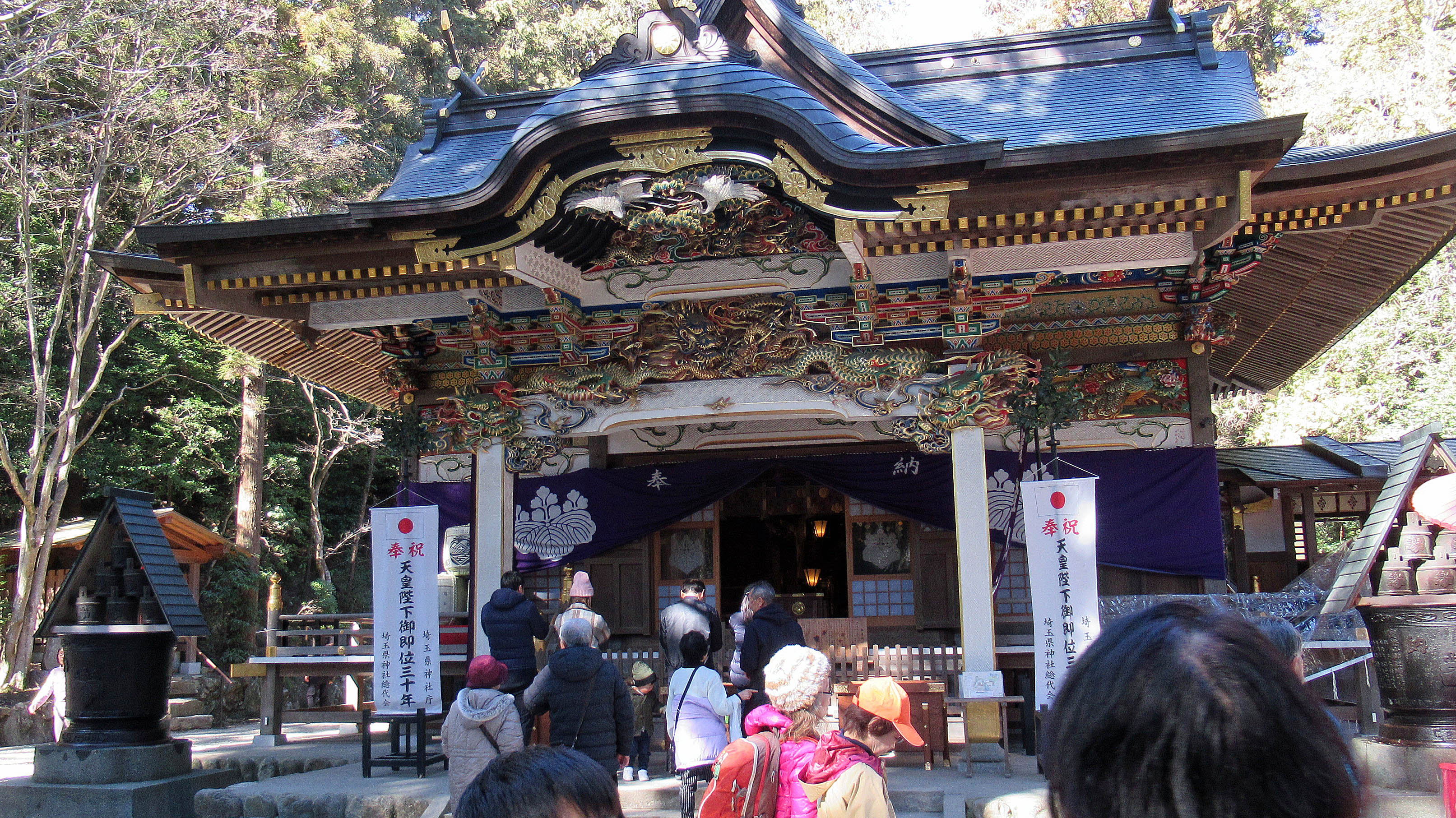 その後、パワースポットの1つである狼のコマ犬で有名な奥宮を参拝して、臨時に運行して頂いたロープウェイで下山し、建築が素晴らしい秩父三社の1つであり昨日節分の豆まきが行われた宝登山神社も参拝した。
