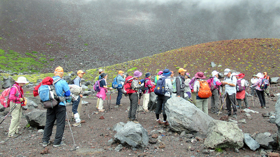 宝永山は三つの噴火口があるが、第一火口が一番大きく直径1.3kmとか。火口を見上げると無機質な異次元の世界に来たような雄大な景色に圧倒される。
