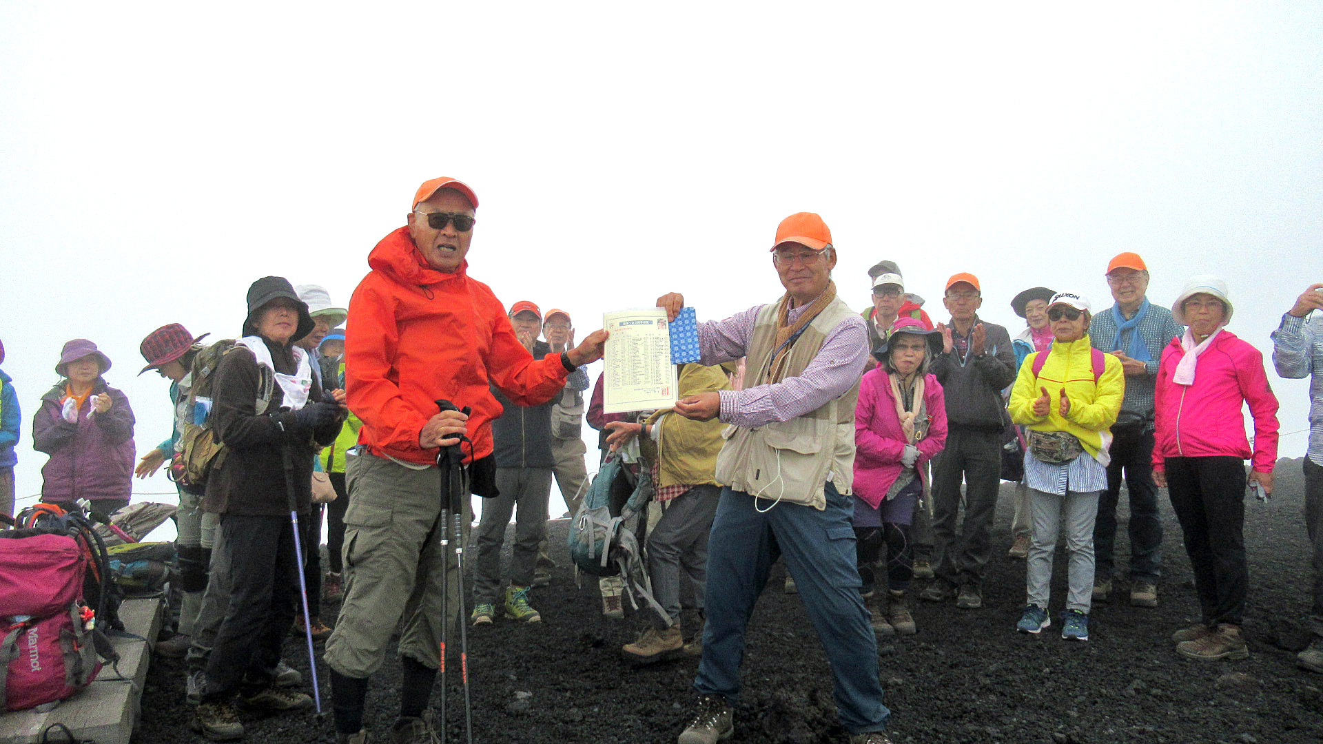 視界が悪く雨も降りだす今回のハイキングであったが皆さん、今まで経験した事のない異次元の景色に満足されて帰路についた。