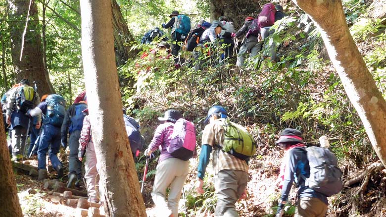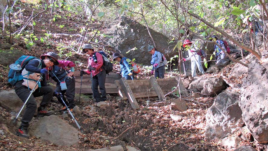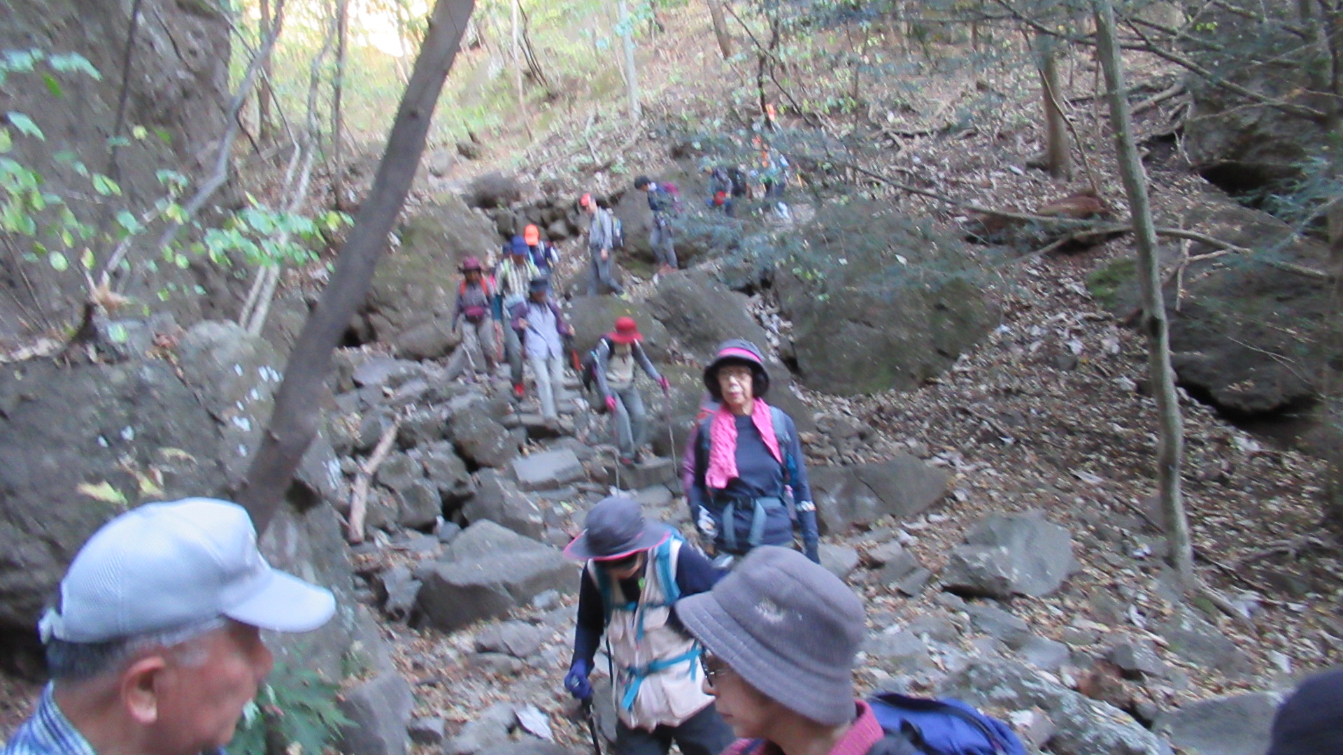 今回は妙義山の中腹を歩くコースだが、以外とアップダウンが厳しく、道も狭いため、歩くのにもかなり注意を要したが、全員無事で歩いてこられたことが一番良だった。