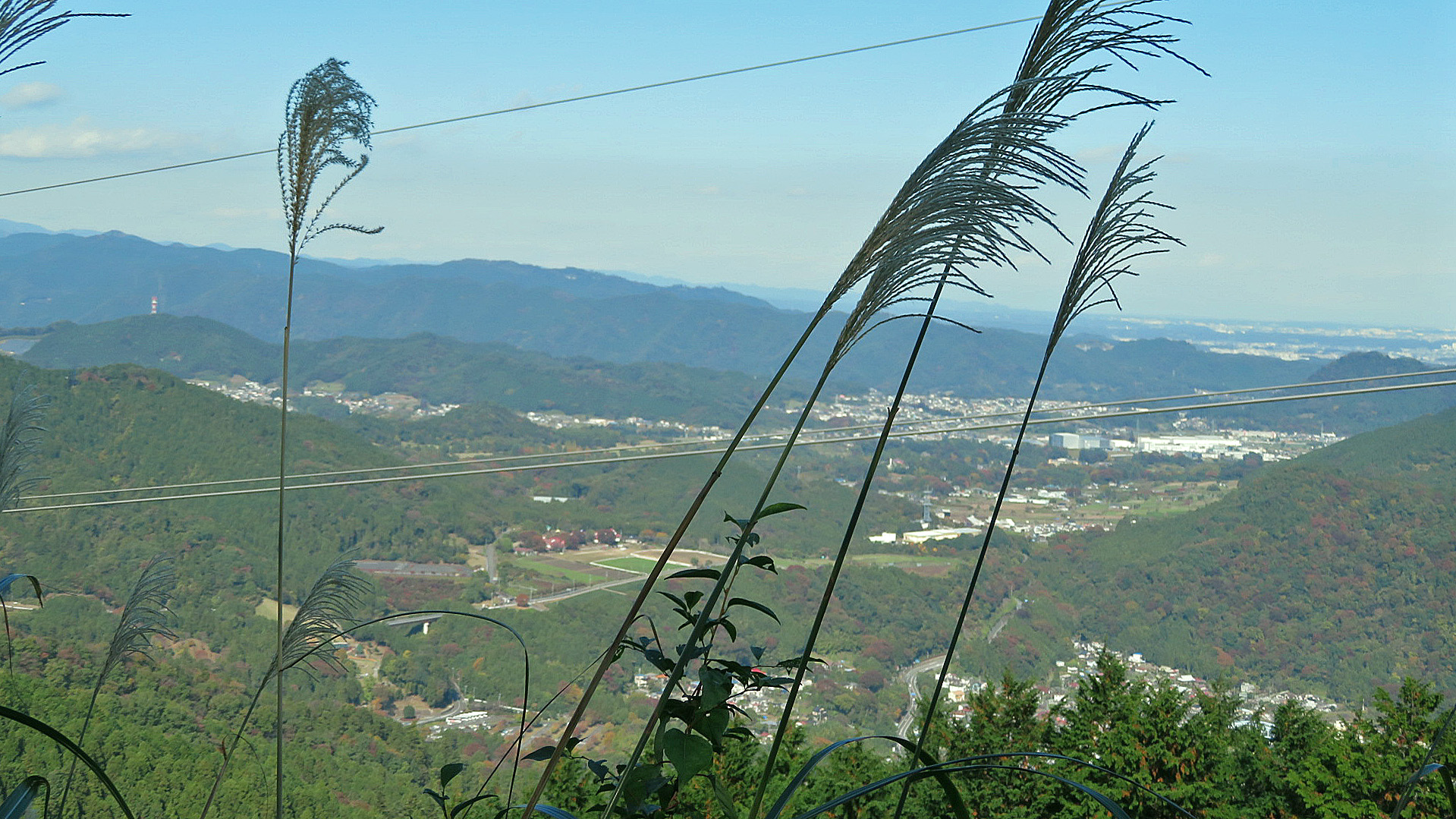 木漏れ日のなか小まめに休憩を取り、服装調整や水分や栄養補給して歩を進めた。暫くするとススキの群生に遭遇し秋を感じながら、その合間から下界の街並みが見える眺望の良い場所があり疲れを忘れさせてくれた。