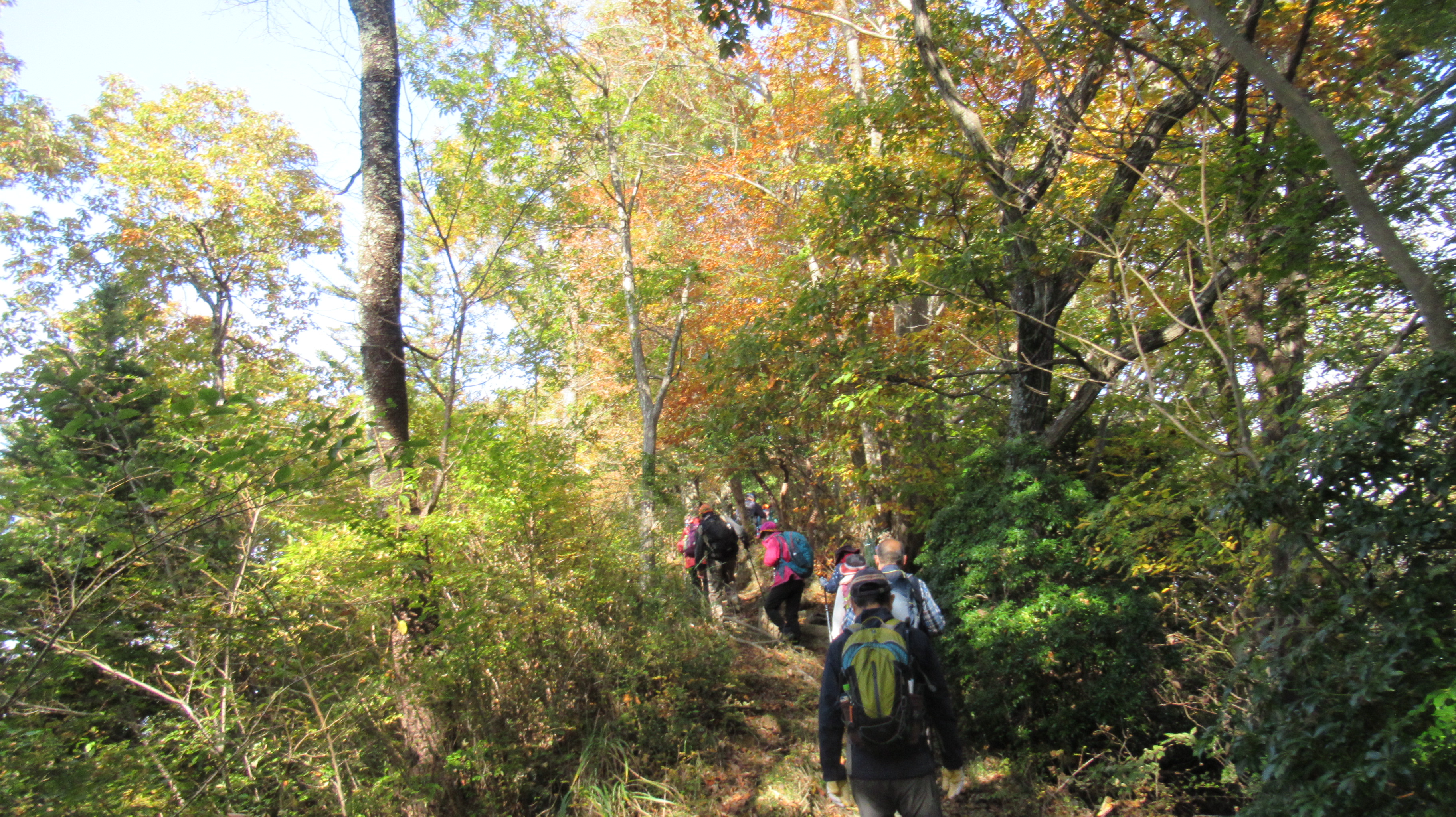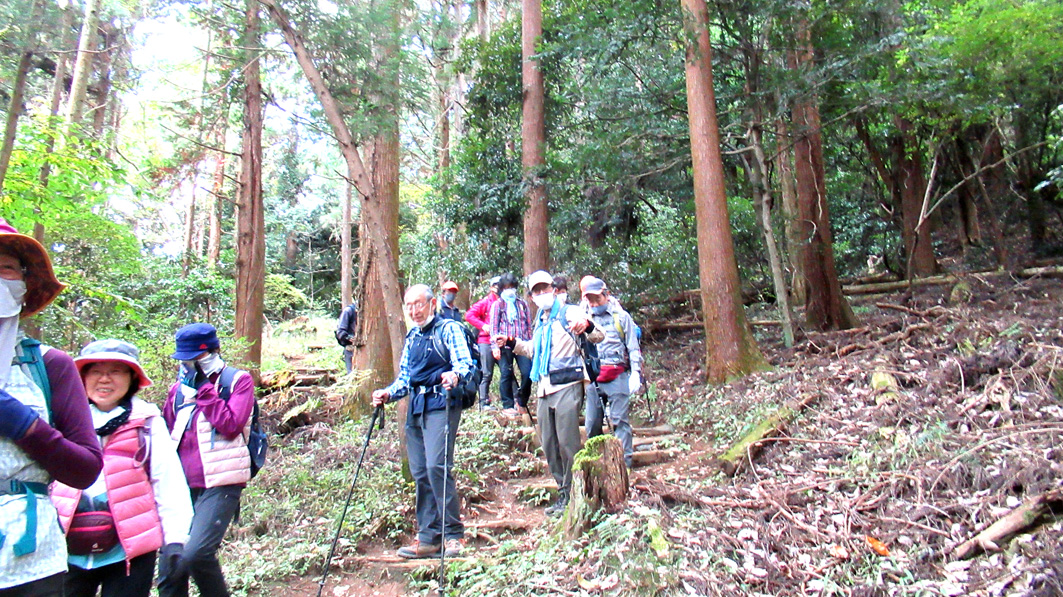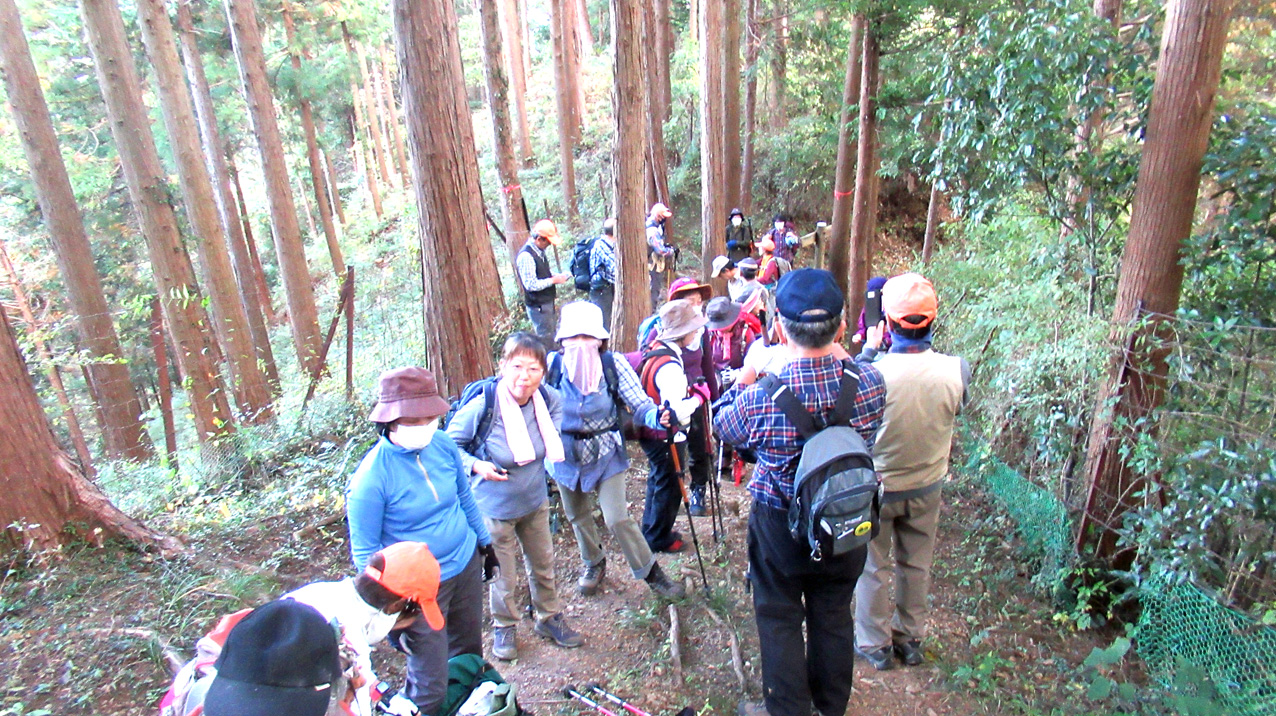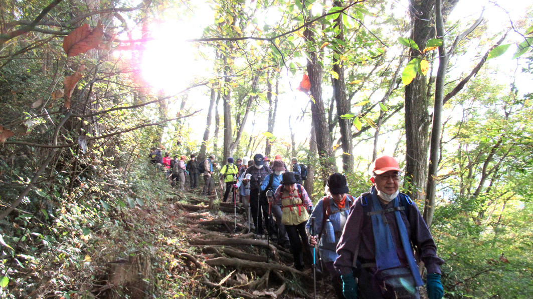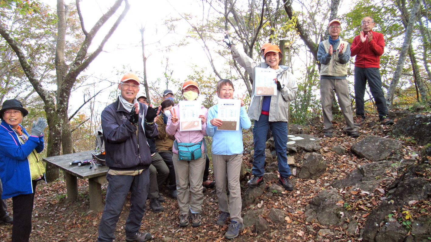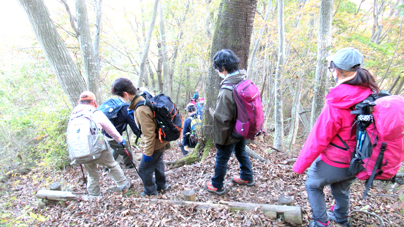 今回の山行は、3月に実施する予定がコロナ渦で、11月に延期されたもので、当初は高取山までミニ縦走する計画であったが、数カ所急な下りがあること、日が短くなっている時期であることを勘案して、仏果山ピストン登山に変更した。明るいうちに全員無事に下山できたので、結果的に正解だったと言えよう。
