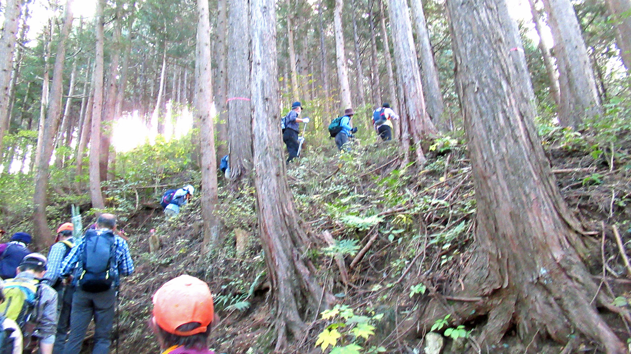 更に登ると「仏果山」のいわれの看板があり室町時代からの座禅修行した山という説明書きがあった。また、山頂直下は登りがきつかったが、昼食が待っているという餌を想い描きながら、頂上747mには12時半に到着した。