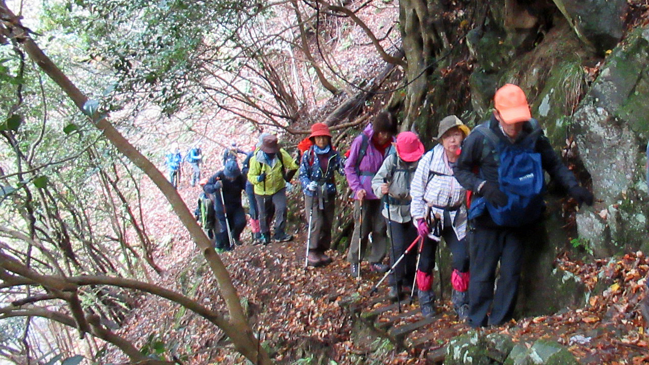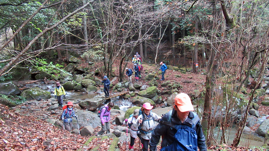 谷太郎川沿いの道は狭いところが多く、滑りやすく危険な箇所もいくつかある。細心の注意をはらい時間をかけて通り抜けて行く。