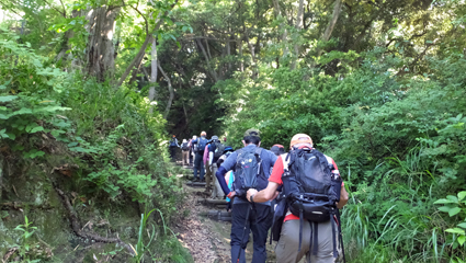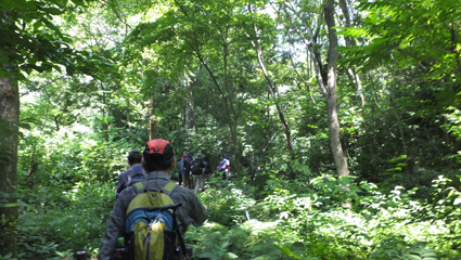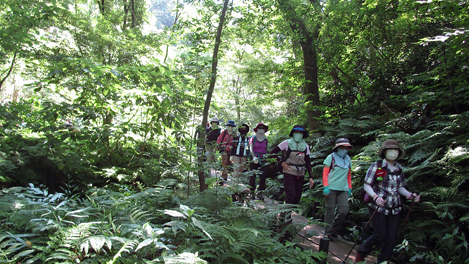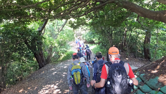 本日のコースの説明・準備体操の後、身支度を整え9時10分ハイキングに出発。