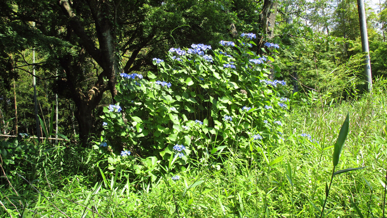 小休止の後、林の続く登り道を少し行くと林の中にポツンとある谷津関ケ谷不動尊近くを通り木々に覆われ涼しい風も吹き抜ける歩き易いボードウオークをしばらく歩くと金沢動物園入口前に到着しました。