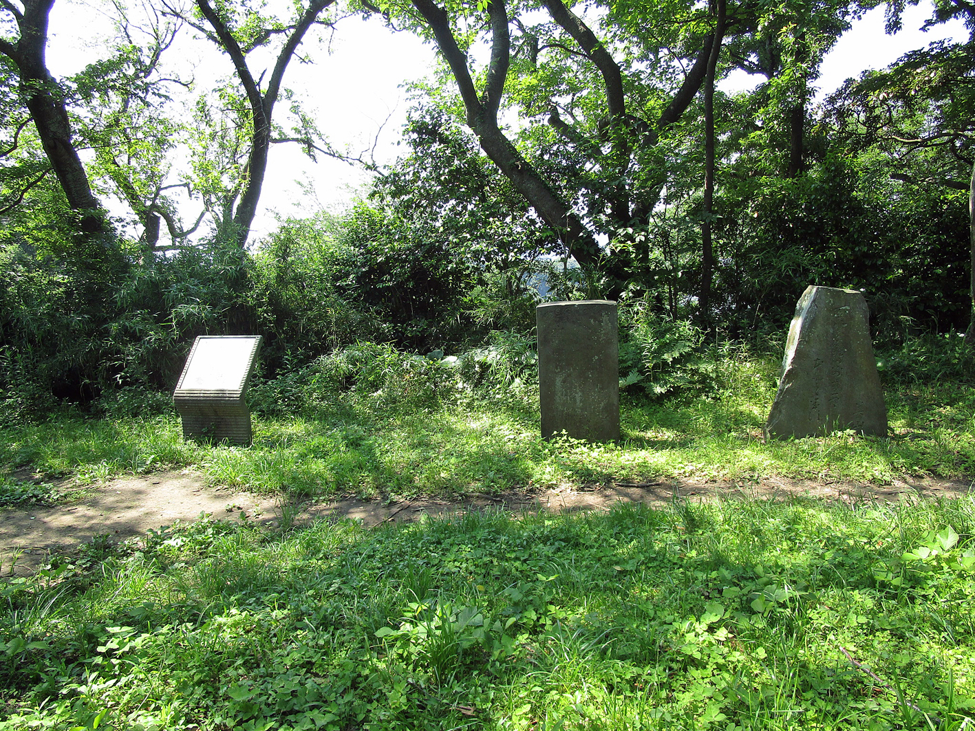 たどり着いた広場は能見堂跡です。寛文年間、芝増上寺の末寺として建てられた地蔵院跡で、心越禅師が金沢八ヵ所の勝景を漢詩に詠んだ金沢八景のひとつです。能見の語源は「能(よ)く見える場所」から名付けられたとか、近くに紹介されていた明治時代の写真では平潟湾や瀬戸神社などが一望できたようです。歌川広重らがこれを題材に浮世絵を描いたことによって能見堂は広く知られるようになったと言います。広場には金沢八景根元地の石柱とともに古い石碑が幾つか残っていました