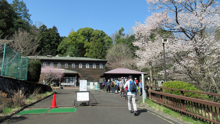 定刻前に参加者全員集合、最初の訪問地桜シーズンの「多摩森林科学園」へ、園内入口広場でオリエンテーション、ウォーミングアップの後、整備された約8ヘクタールのサクラ保存林のサクラの種類を確認しながら約90分森林浴ウォーキング。