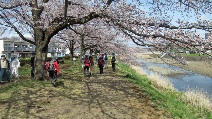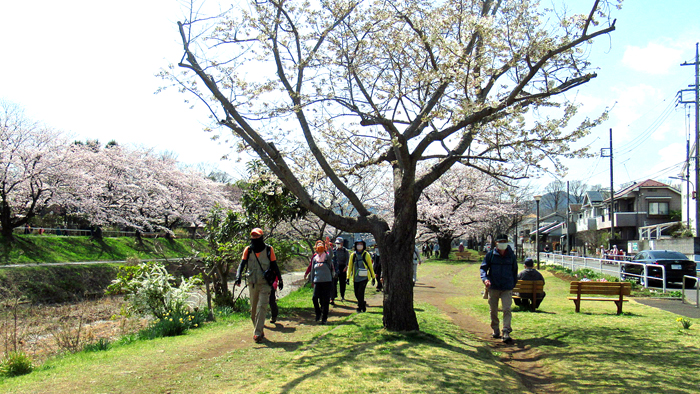 昼食休憩後、南浅川橋から川沿いのサクラを楽しみながら五月橋まで、最寄りの桑の実公園でクールダウン、伴さんから4月20日行先が変更になった「岩戸山・十国峠」のご案内をして14時前解散、西八王子駅へご案内。