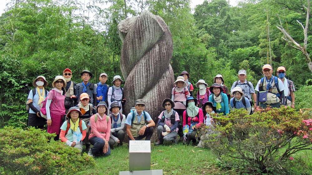 「森の守護神」を囲み集合写真