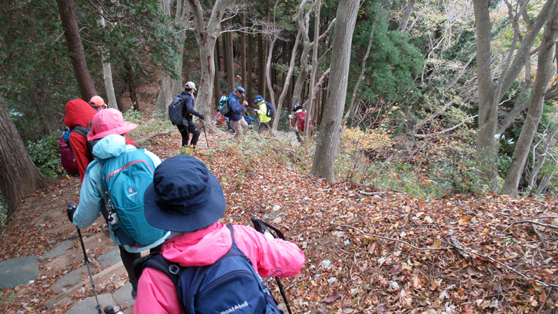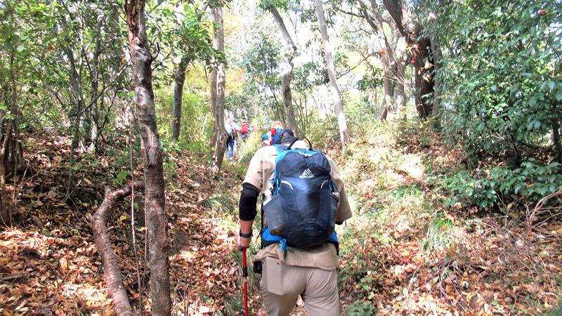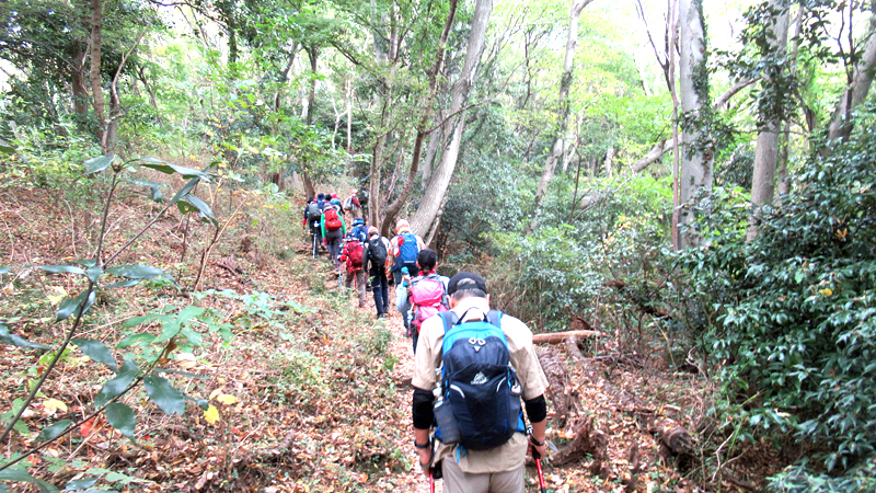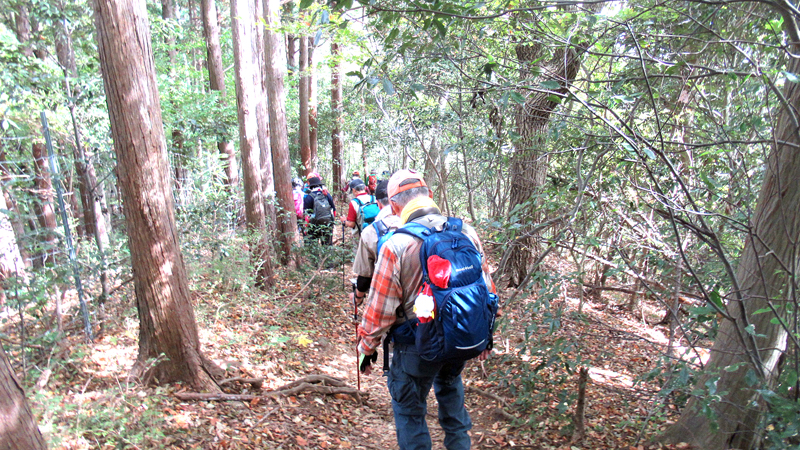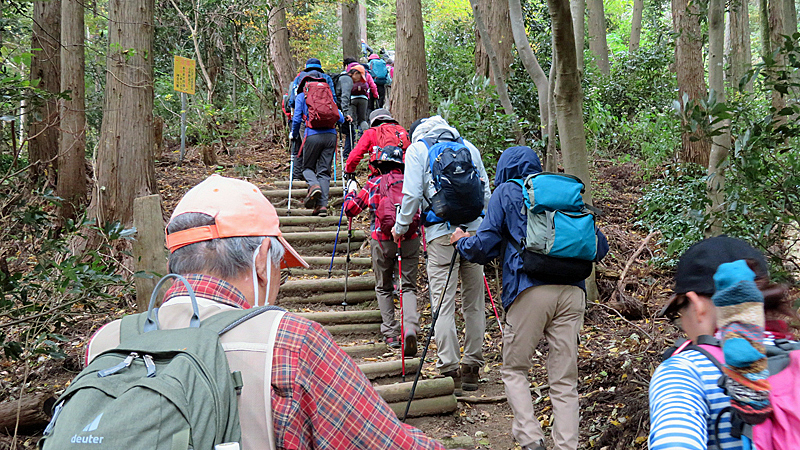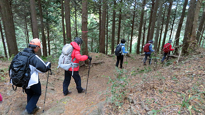 午後4時頃から雨模様で肌 寒い日であったが登り始めると汗をかく。