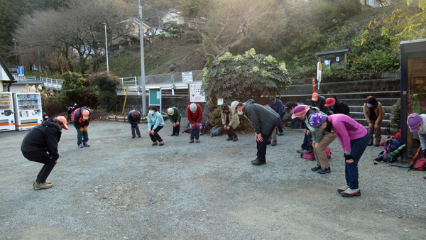 9時45分に谷峨駅に集合。ミーティング、ストレッチを行い10時にスタートする。晴天で風もなく絶好の登山日和。