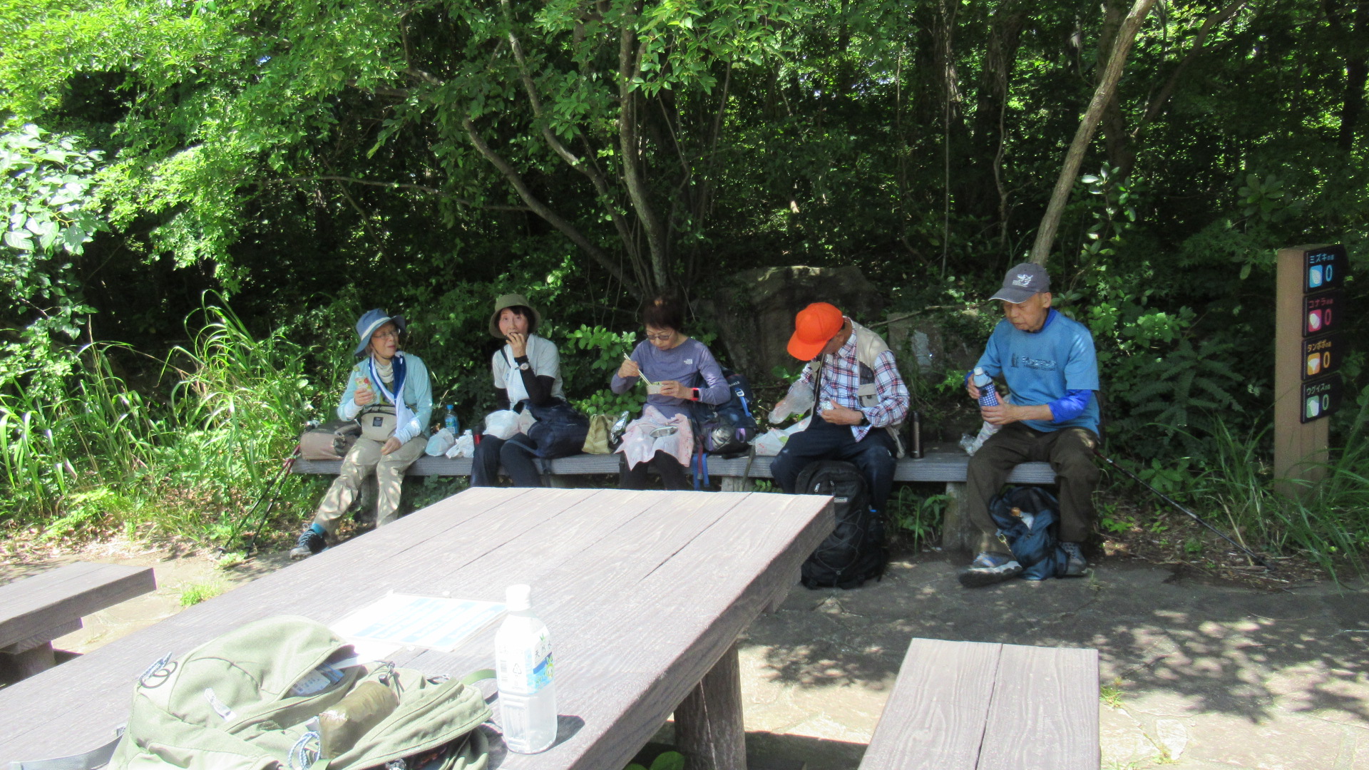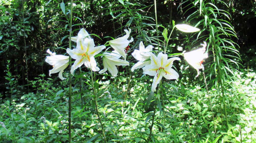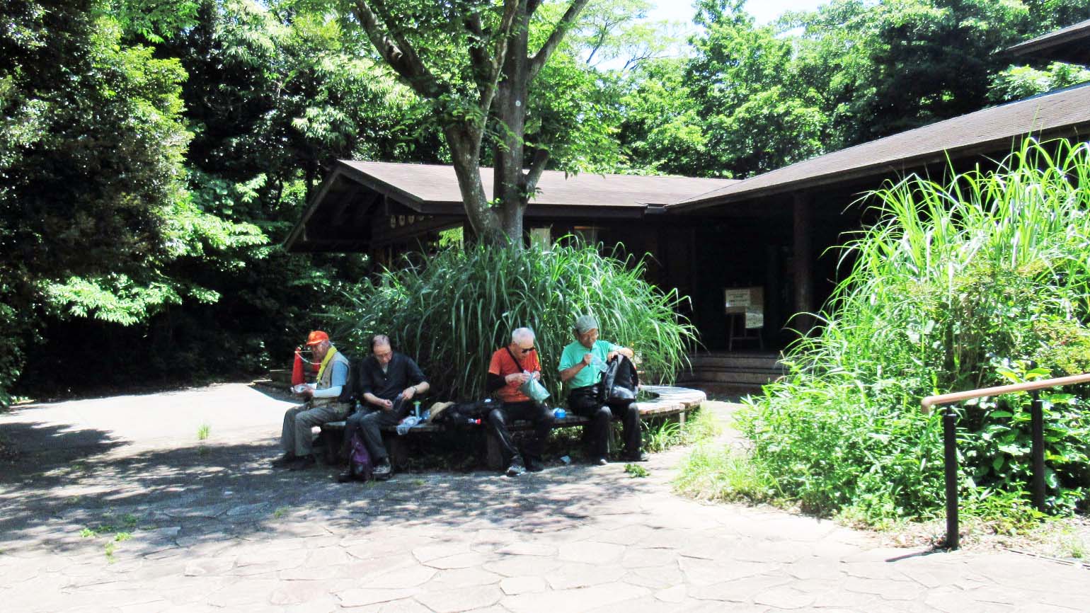 途中「神奈川県の花」である百合の花の群生を見ながら木々に覆われた涼しい山道をしばらく歩き、関谷奥見晴台に到着しました。遠くに街や八景島など見え清々しい気分になりました。小休止、水分補給を十分行った後、再び木々の中をしばらく歩き坂を下ると自然観察センターに12時15分に到着しました。木々に囲まれ気持ち良い場所でほっと一息つくことが出来ここで昼食としました。