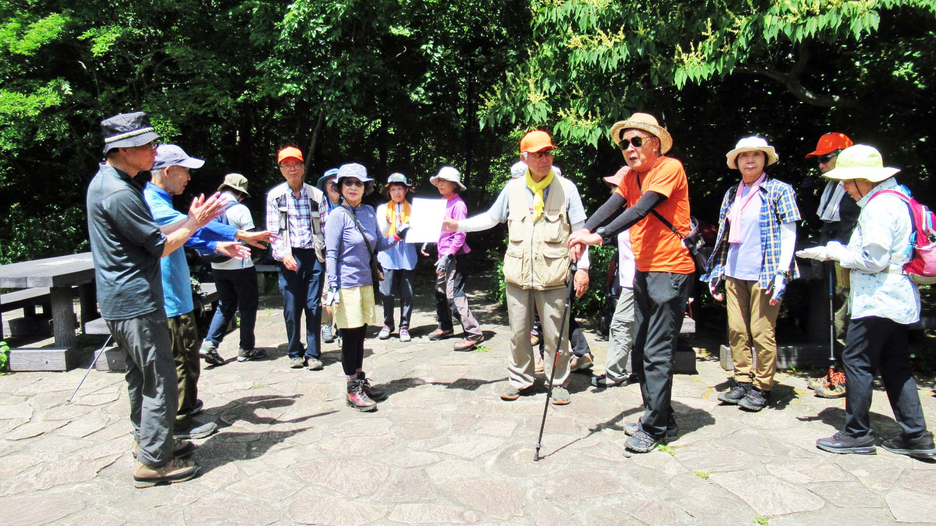 9時京浜急行金沢文庫駅に集合、本日のコースの説明・準備体操の後、身支度を整え9時10分ハイキングに出発。