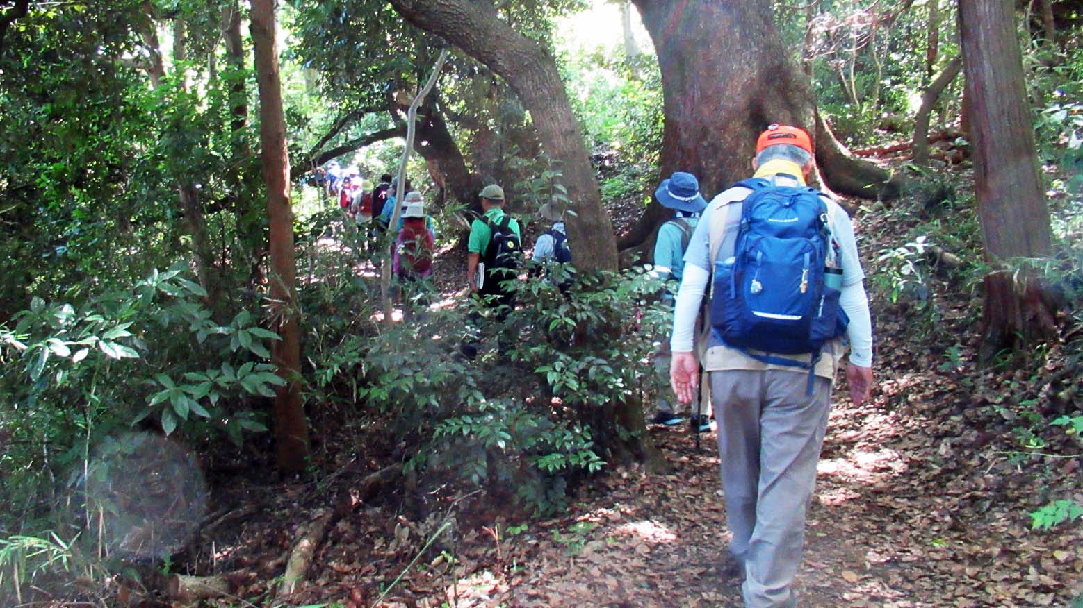 昼食後H.O会員の100回参加の表彰式を行い集合写真などを取り13時六国峠(天園)に向けて出発しました。