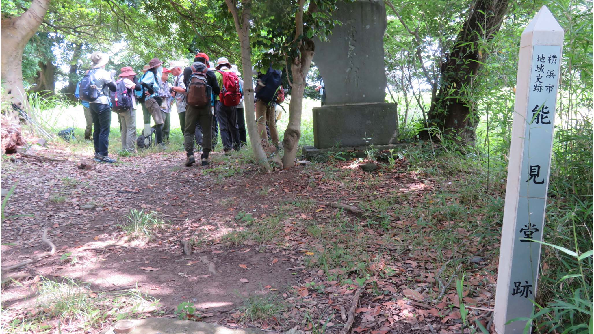 金沢文庫駅の駅前からハイキングコースが始まります。川沿いの道を案内板に導かれながら市街地を進む。登山口から急な石段を登り雑木林の中を緩やかに登って行くハイキングコースが続いています。泥濘に悪戦苦闘を予想してましたが連日の晴天で大した泥濘もなく歩け草深い道を進むと能見堂跡の広場に到着しました。