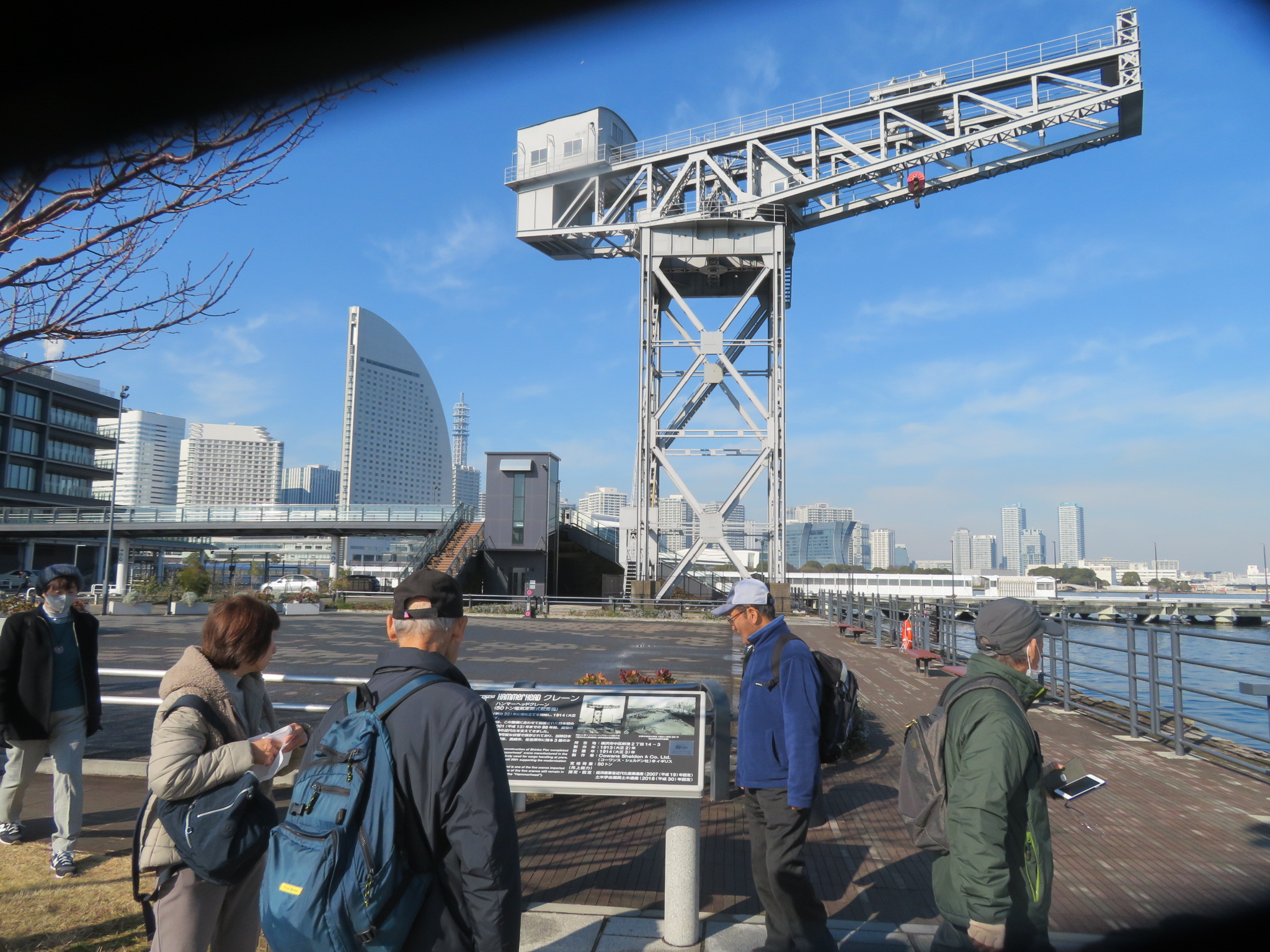 ハイキングの会の新年度を飾る横浜の変わりゆくベイエリア散策と「報告会・懇親会」を1月20日(月)に19名の参加者で実施した。集合場所である桜木町駅南改札口に10時には全員集合し、早速出発し汽車道を通り運河パークで簡単なオリエンテーションを行った。