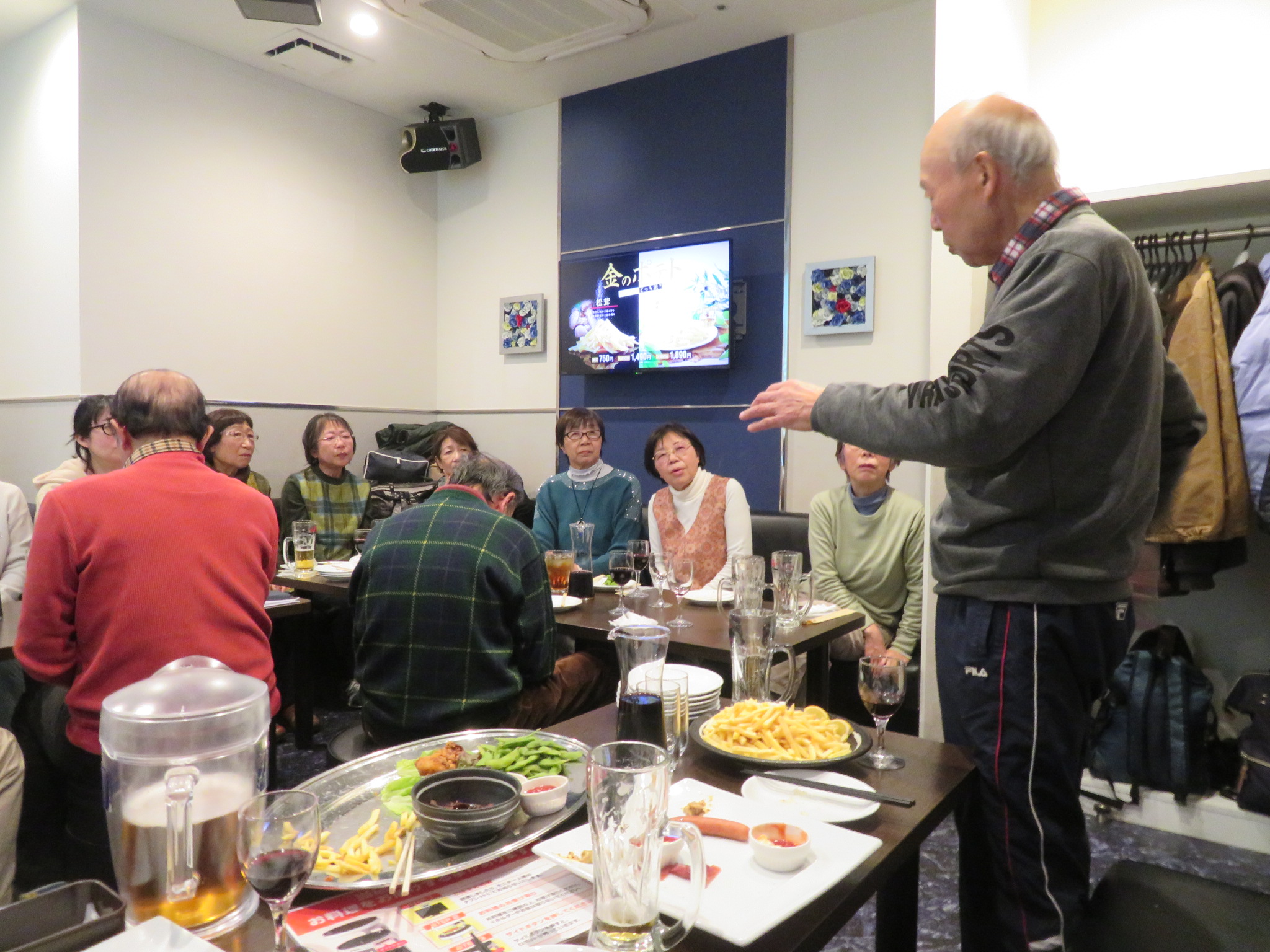 その後、楽しみの懇親会に移り全員から1分間スピーチをして貰った。食事は飲み放題で各自好きな飲み物を飲んでいたようだし、ボリュウムたっぷりの料理に舌鼓。時間が経つにつれ会場がカラオケ付のためカラオケを楽しみ、普段聞けない人からの歌で大盛り上がり、予定時間を1時間延長して楽しかった思い出に残る懇親会を終わり解散となった。