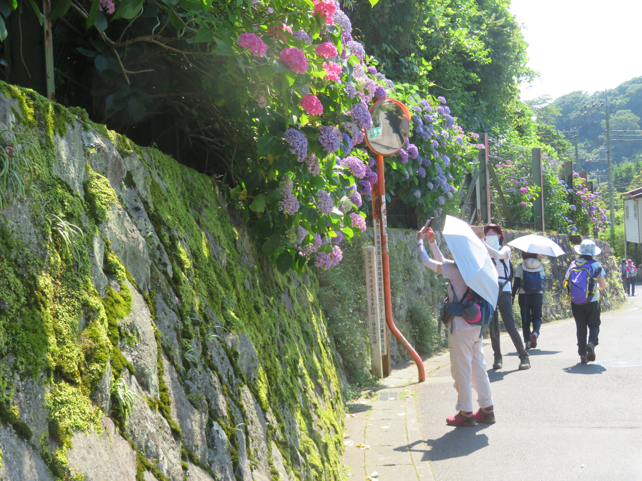 6 月 18 日(水) 雲一つない晴天に恵まれ、6月では稀に見る酷暑の中、参加者 16 名(うち女性 13 名)で円海山・