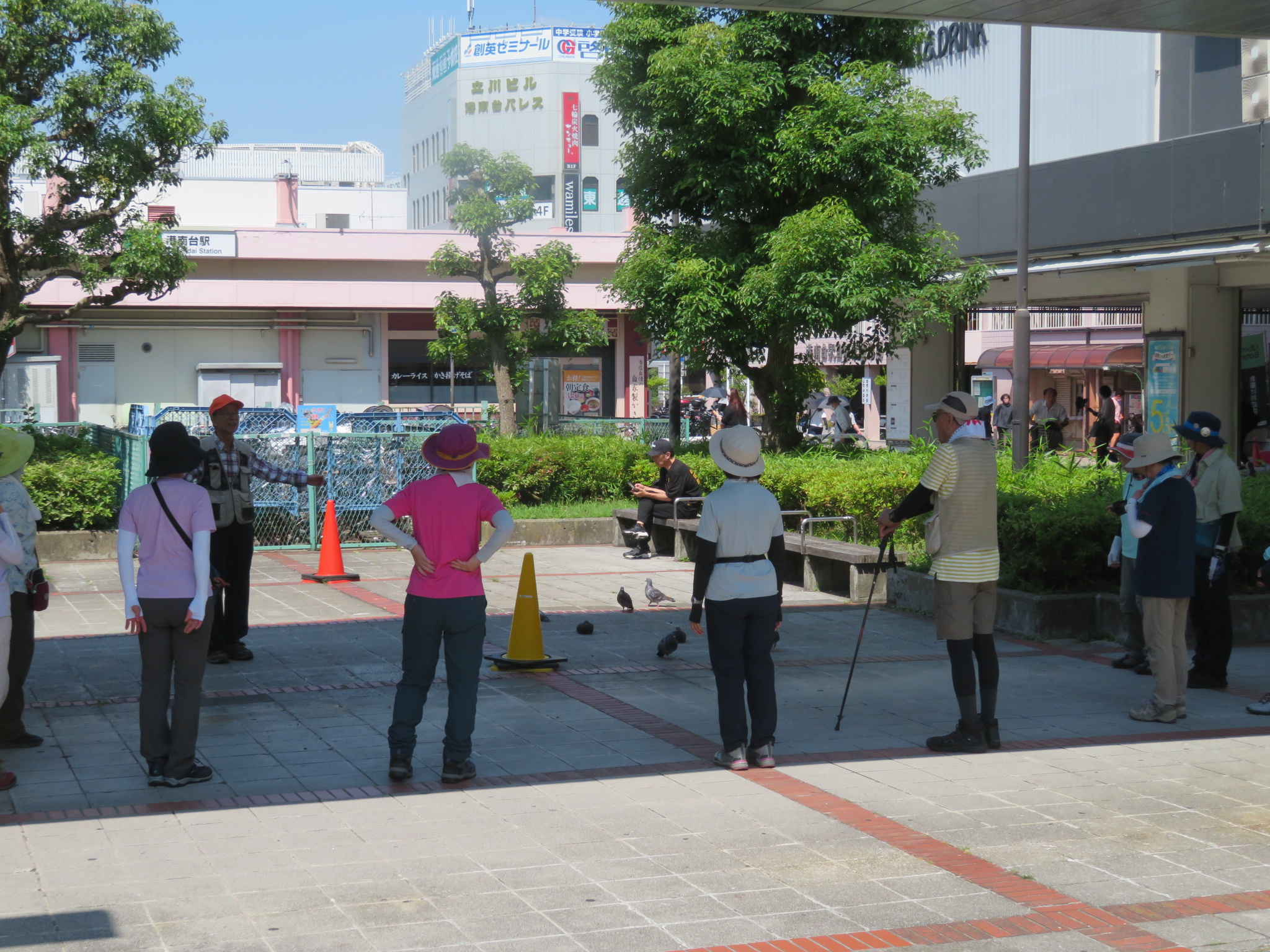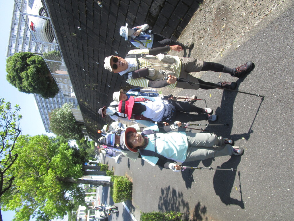 今回体験参加された杉崎由美子さんを紹介。その後マンション等高層ビル群が立ち並ぶ市街地をしばらく歩き、