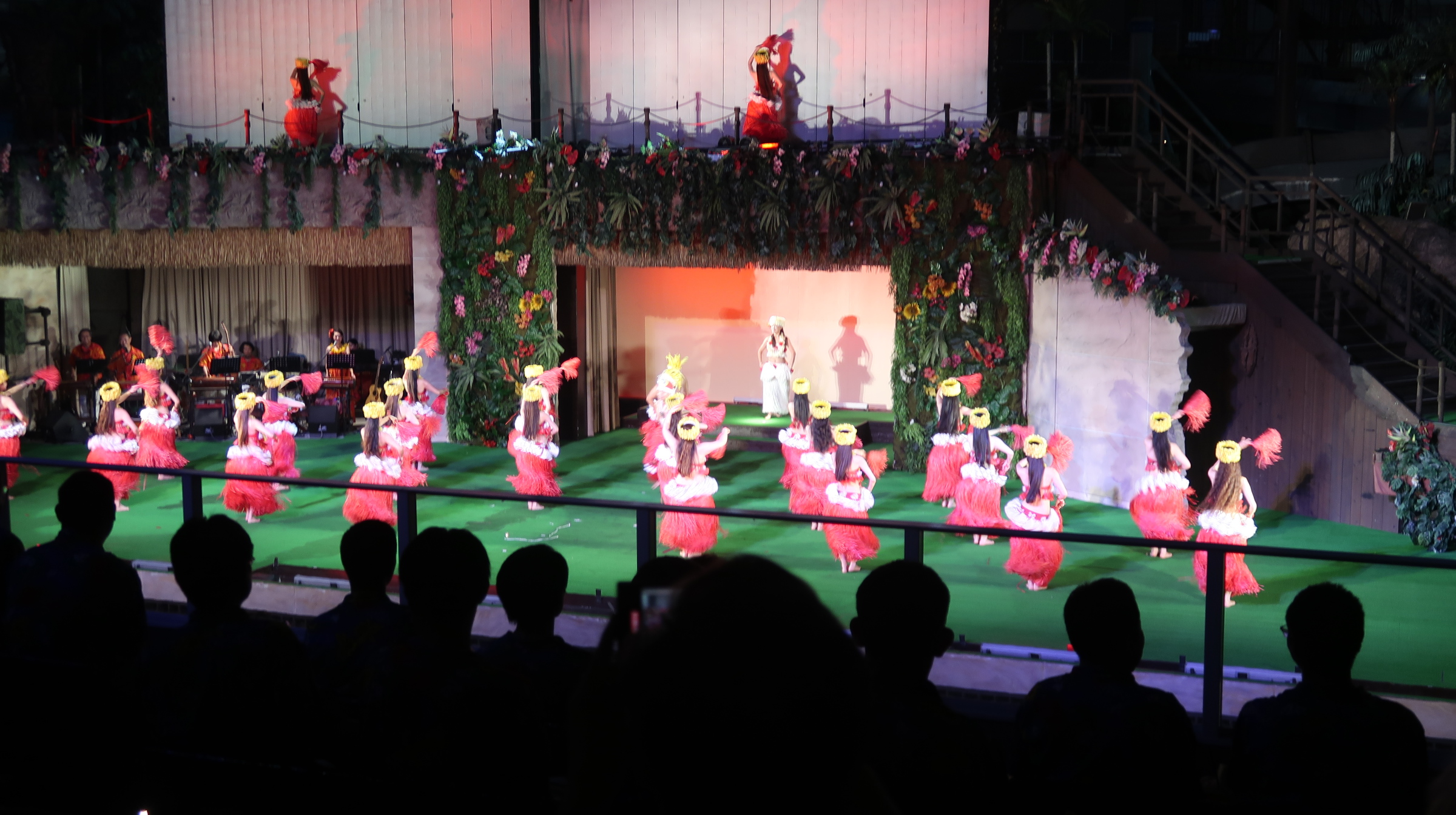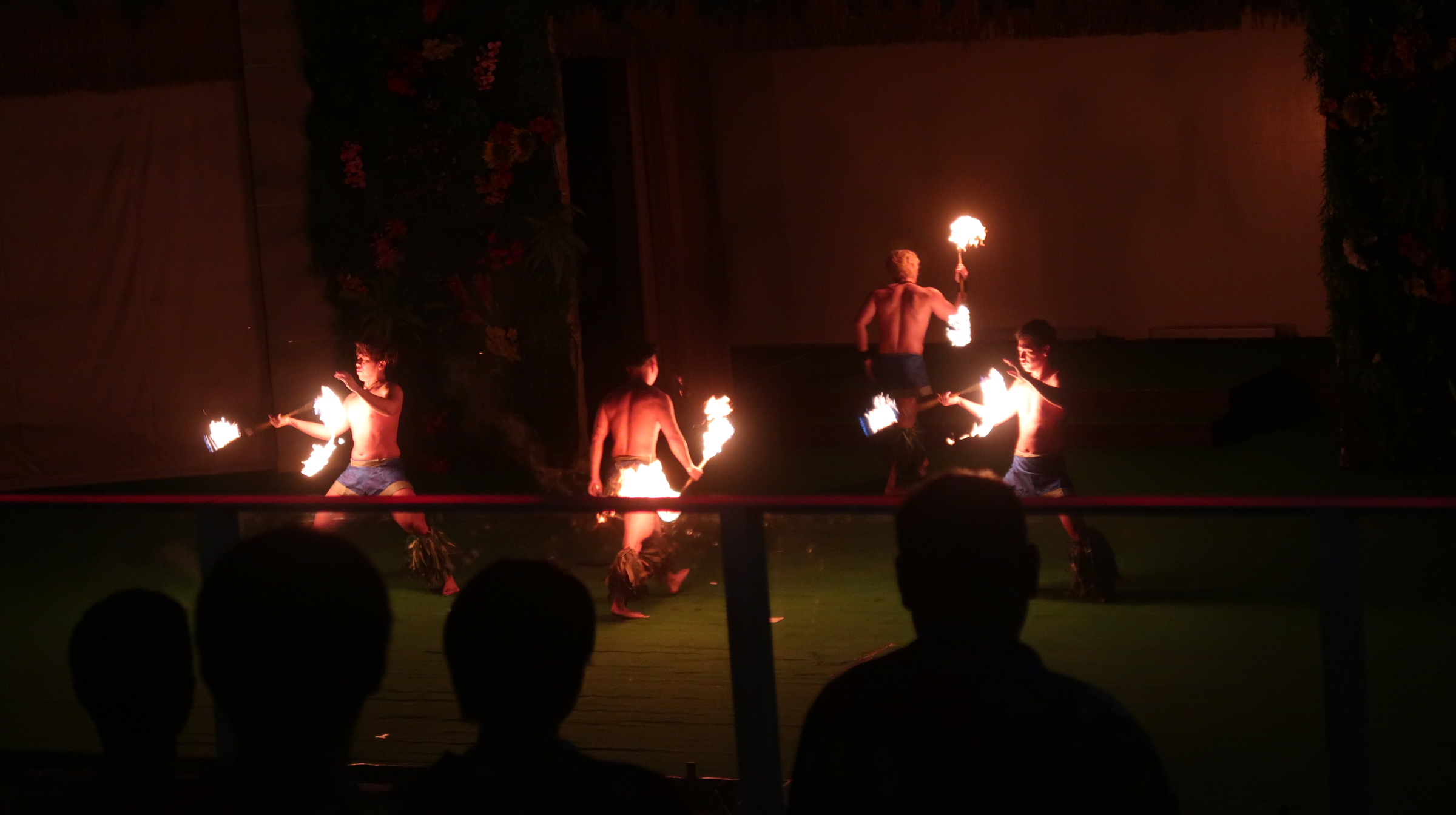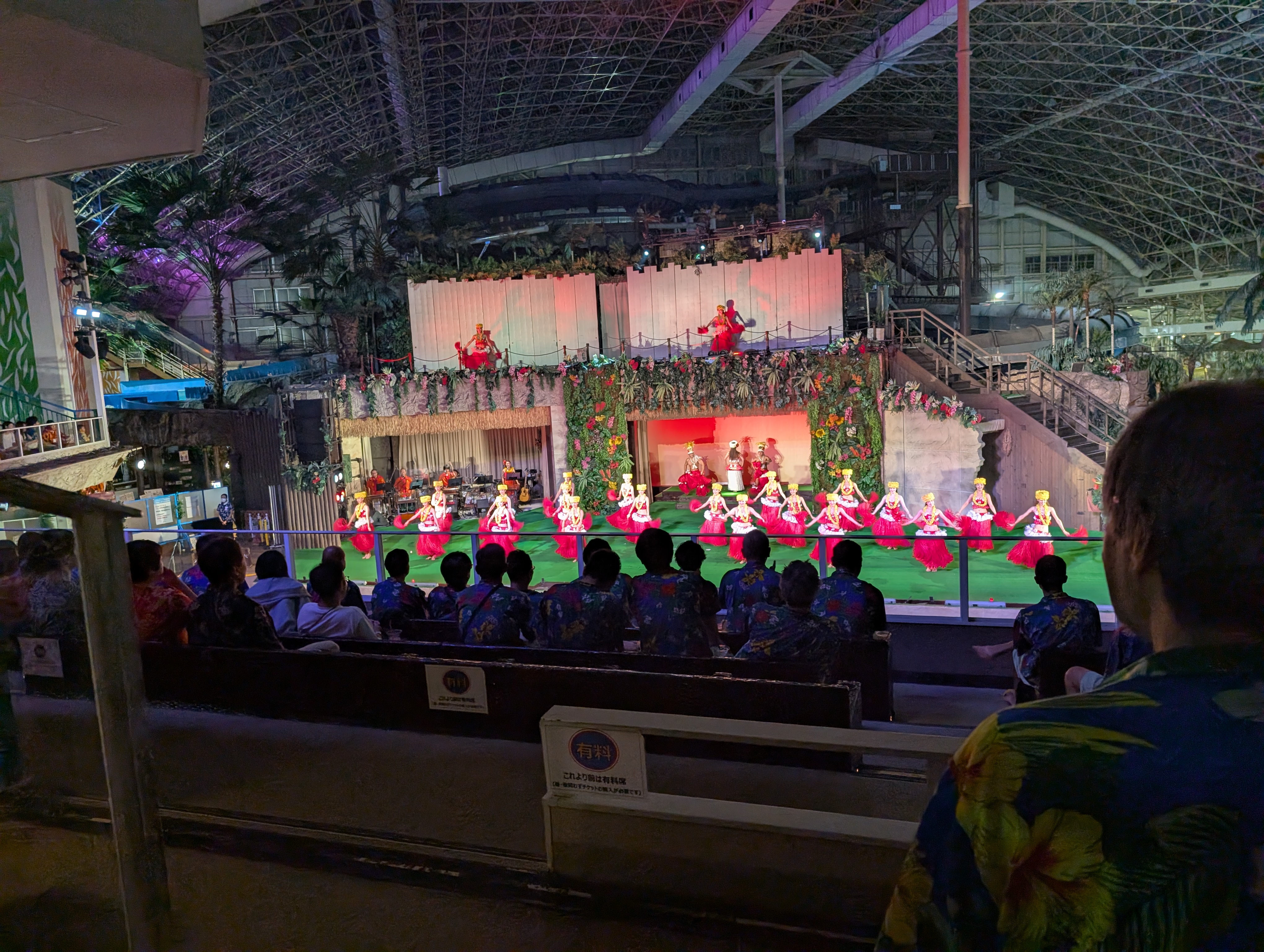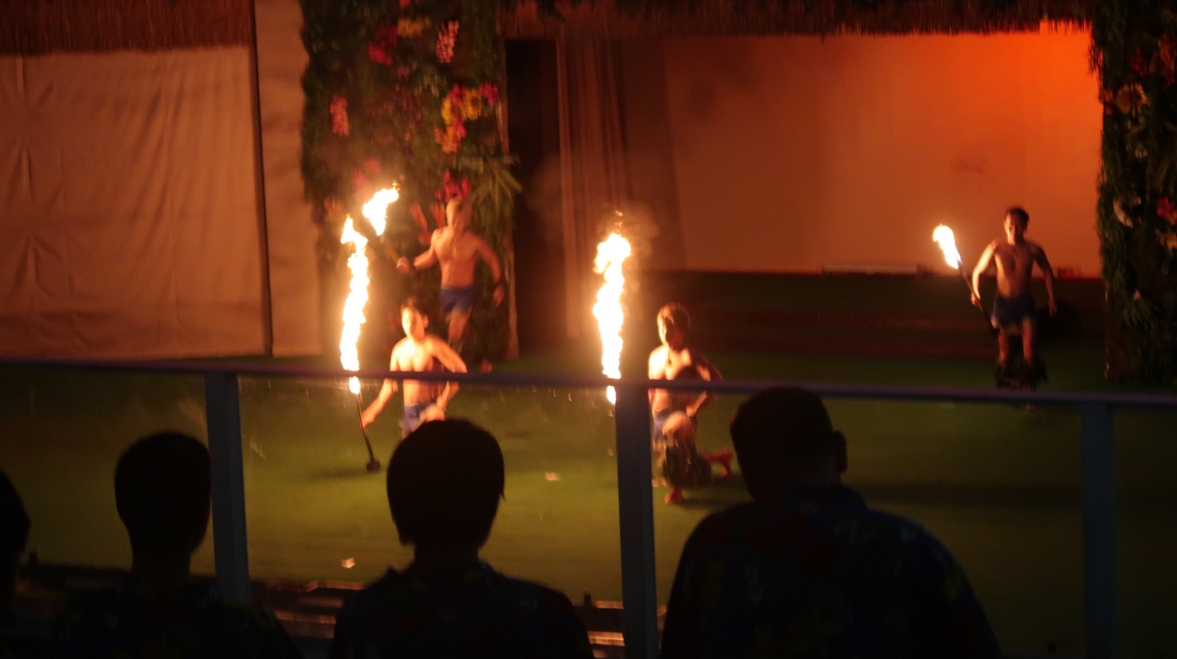 食事を終えた後は、ホテル名物のポリネシアンショー。きらびやかな衣装に身を包んだダンサーたちが舞台いっぱいに繰り広げるフラダンスに、