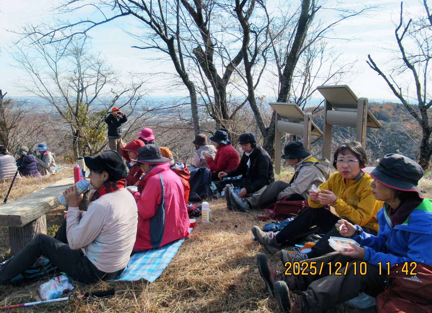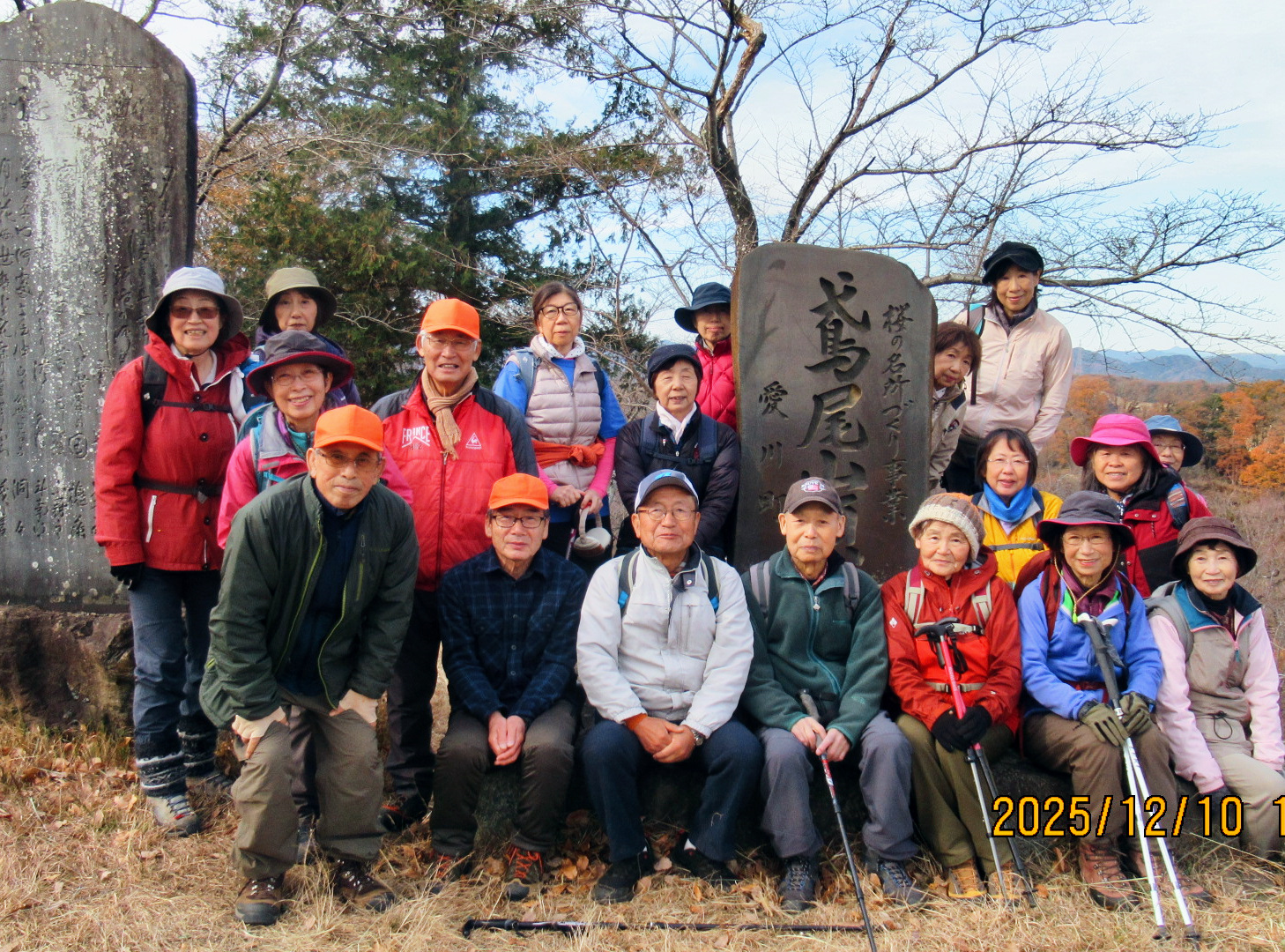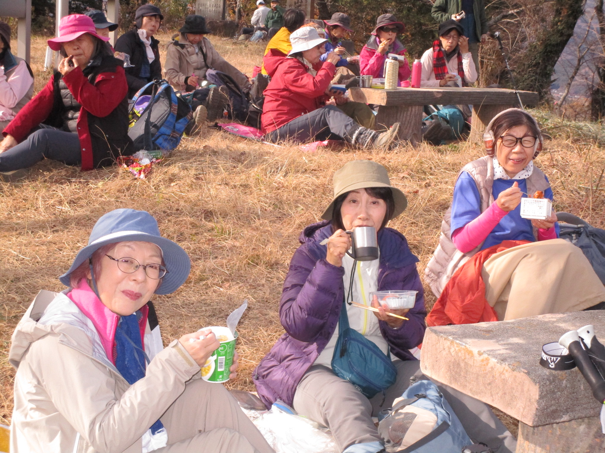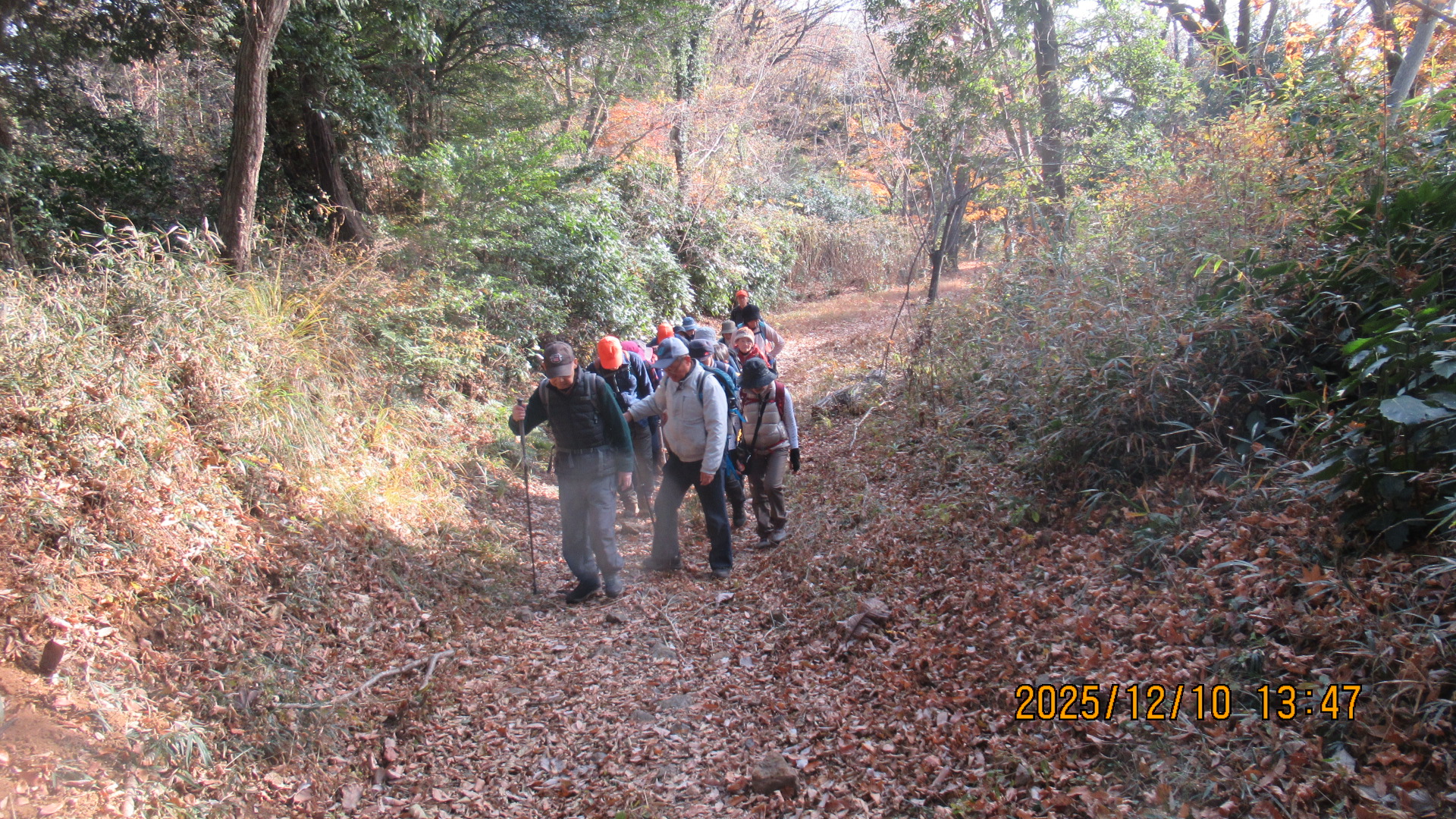 休息のあとは、坂道をを下り、そして今度は登りが続き鳶尾山山頂に到着。