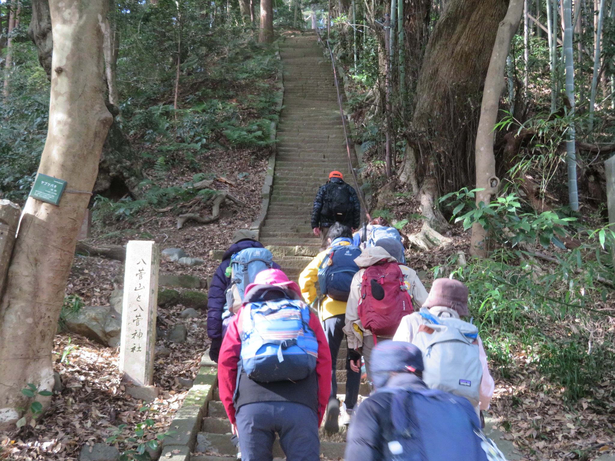 鳥居をくぐり、300段の長い階段を上がって八菅神社に到着。