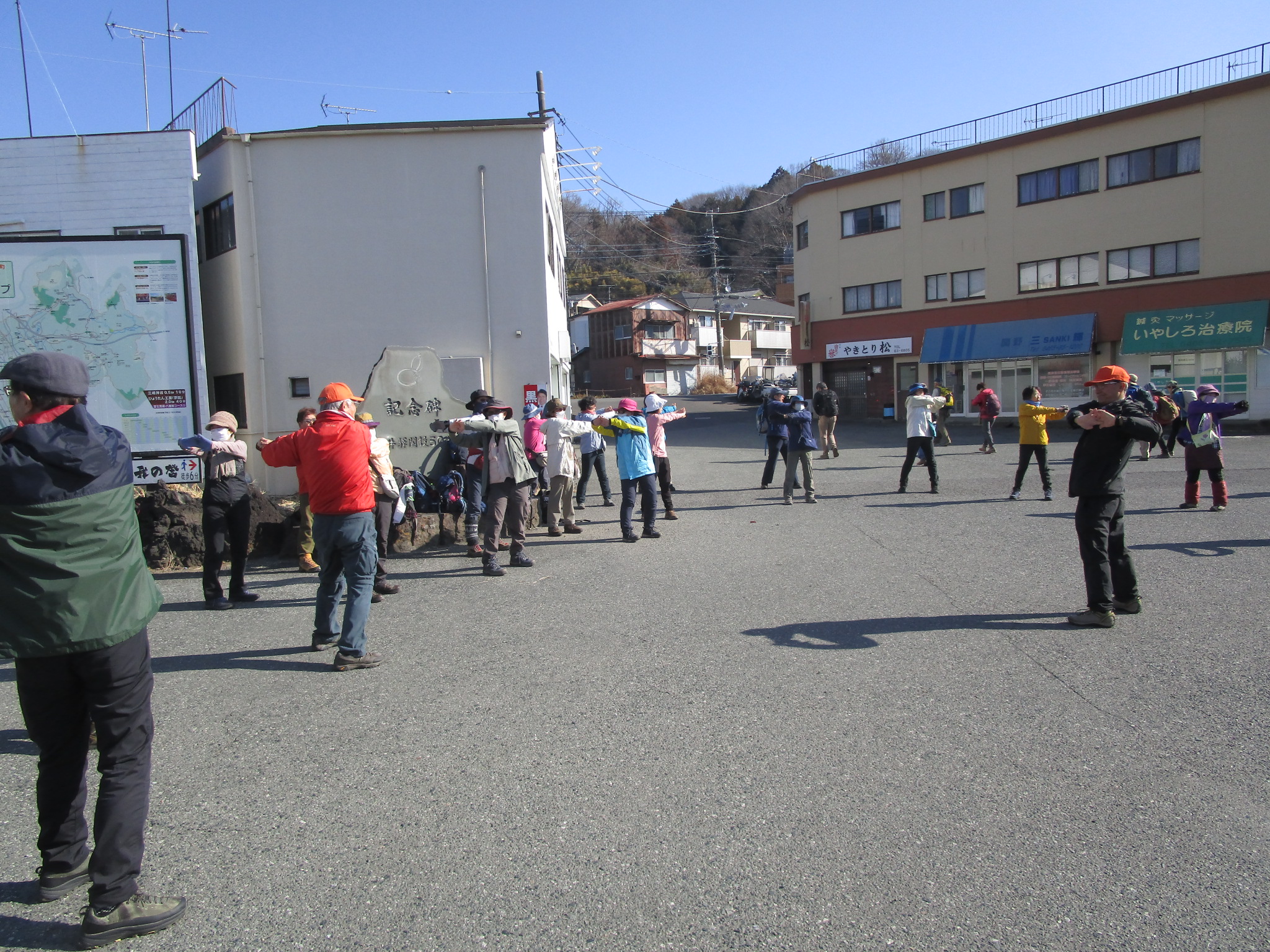 9時30分に「上大井駅」広場に集合。ミーティング・ストレッチを行い9時45分出発。登り始めて途中、露店販売があり皆さん購入。