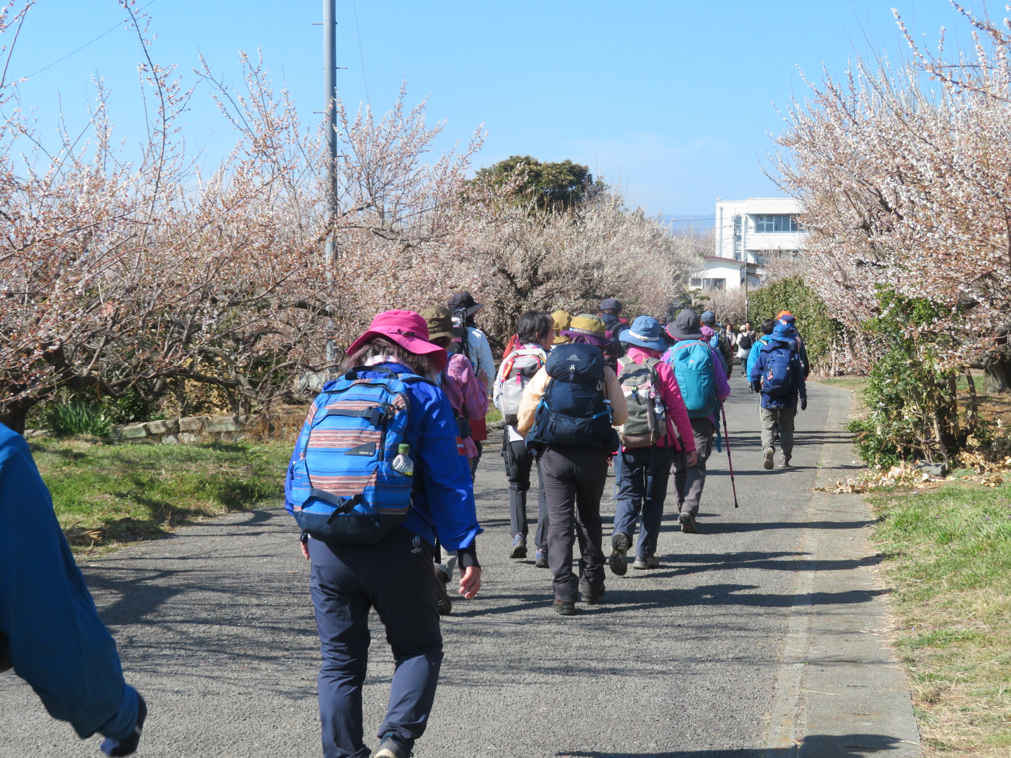 曽我別所曽我梅林に午後1時10分に到着。梅林は満開で多くの見物客が。電車の発車時刻の関係から20分の昼食・トイレ休憩。
