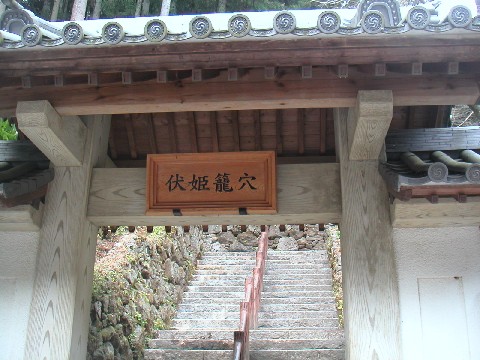 伏姫が籠もったといわれる伏姫篭穴前、14;20着、立派な門が出来、びっくり!小休憩の後、