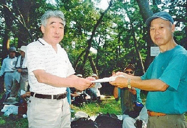 丁度、通算50回参加賞を会員の柴田廣三さんにお渡ししました