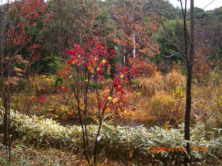 枯葉を踏みながらも、わずかながら紅葉の名残が残っていました。